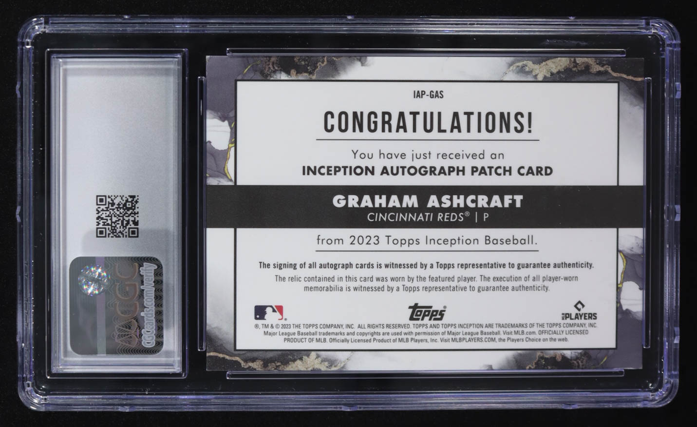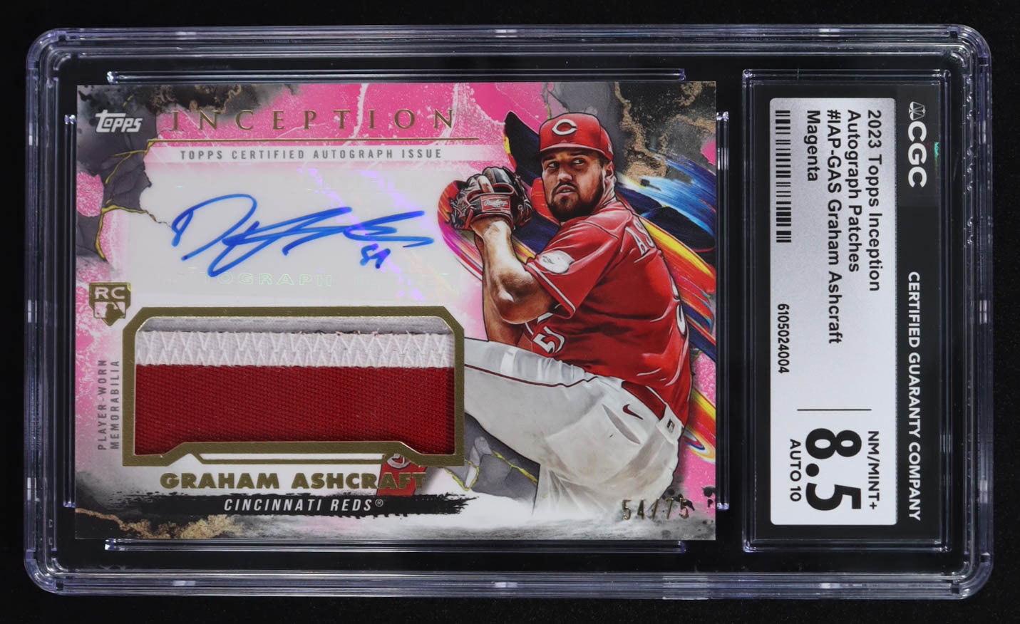 Graham Ashcraft 2023 Topps Inception Autographs Patches Magenta #IAP-GAS RC #54/75 (CGC 8.5 | Autograph Graded CGC 10)