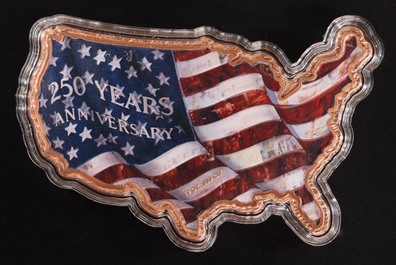 10 Oz .999 Fine Copper United States of America 250th Anniversary Bullion Art Bar - Limited Mintage of 2,500