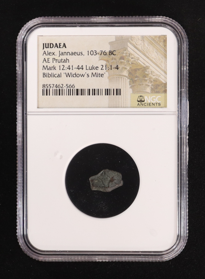 Biblical "Widow's Mite" Judaea 103-76 BC, Alex Jannaeus, AE Prutah - Mark 12:41-44 (NGC) - 8557462-566
