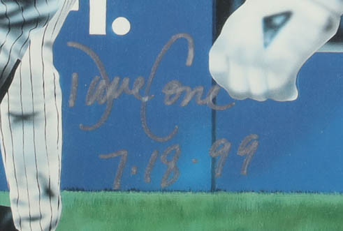 Lithograph measures 19.5" x 20.5" in size and has been hand-signed and inscribed by Joe Girardi and David Cone (New York Yankees). The lithograph has also been signed and numbered limited edition #450/1,999 by the artist, Bill Lopa.
