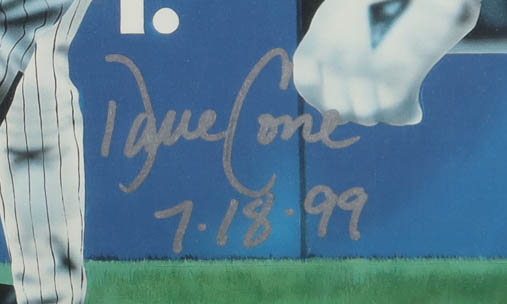 Lithograph measures 19.5" x 20.5" in size and has been hand-signed and inscribed by Joe Girardi and David Cone (New York Yankees). The lithograph has also been signed and numbered limited edition #431/1,999 by the artist, Bill Lopa.