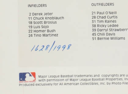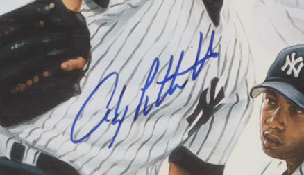 Lithograph measures 20" x 24" in size and has been hand-signed by Andy Pettitte (New York Yankees). The piece has also been hand-signed by the artist Doo S. Oh. This item is limited edition and has been hand-numbered #1628/1998.