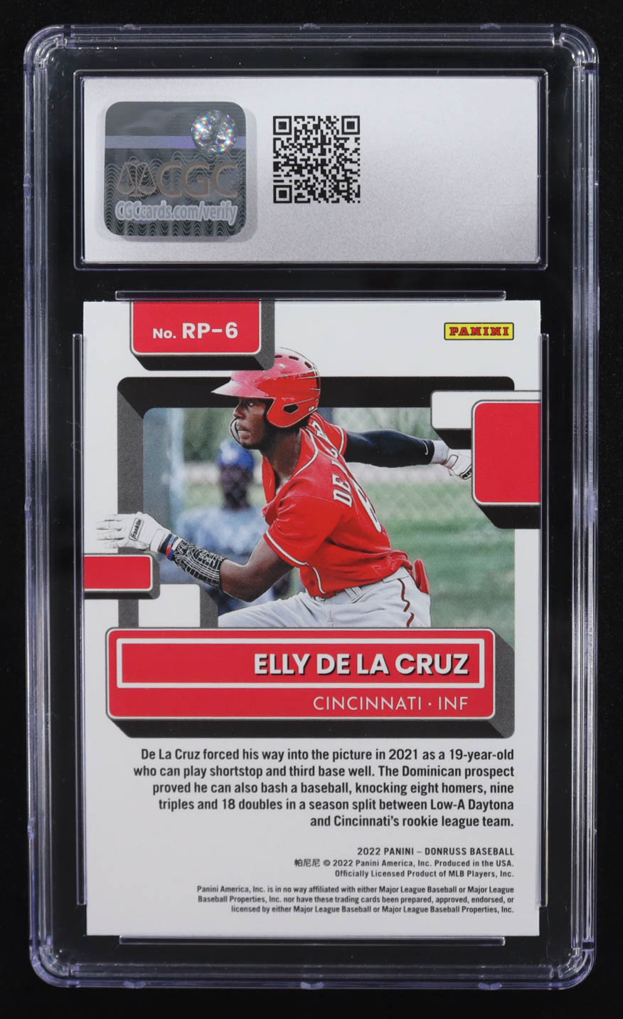 Elly De La Cruz 2022 Panini Donruss Rated Prospect Vector #RP-6 RC (CGC 8.5)