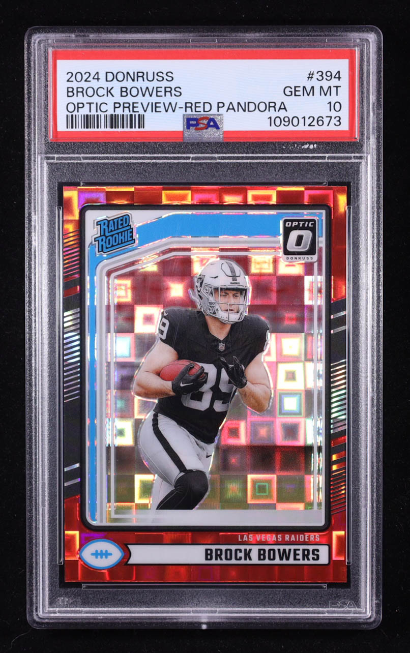 Brock Bowers 2024 Donruss Optic Rated Rookies Preview Red Pandora #394 RC (PSA 10)