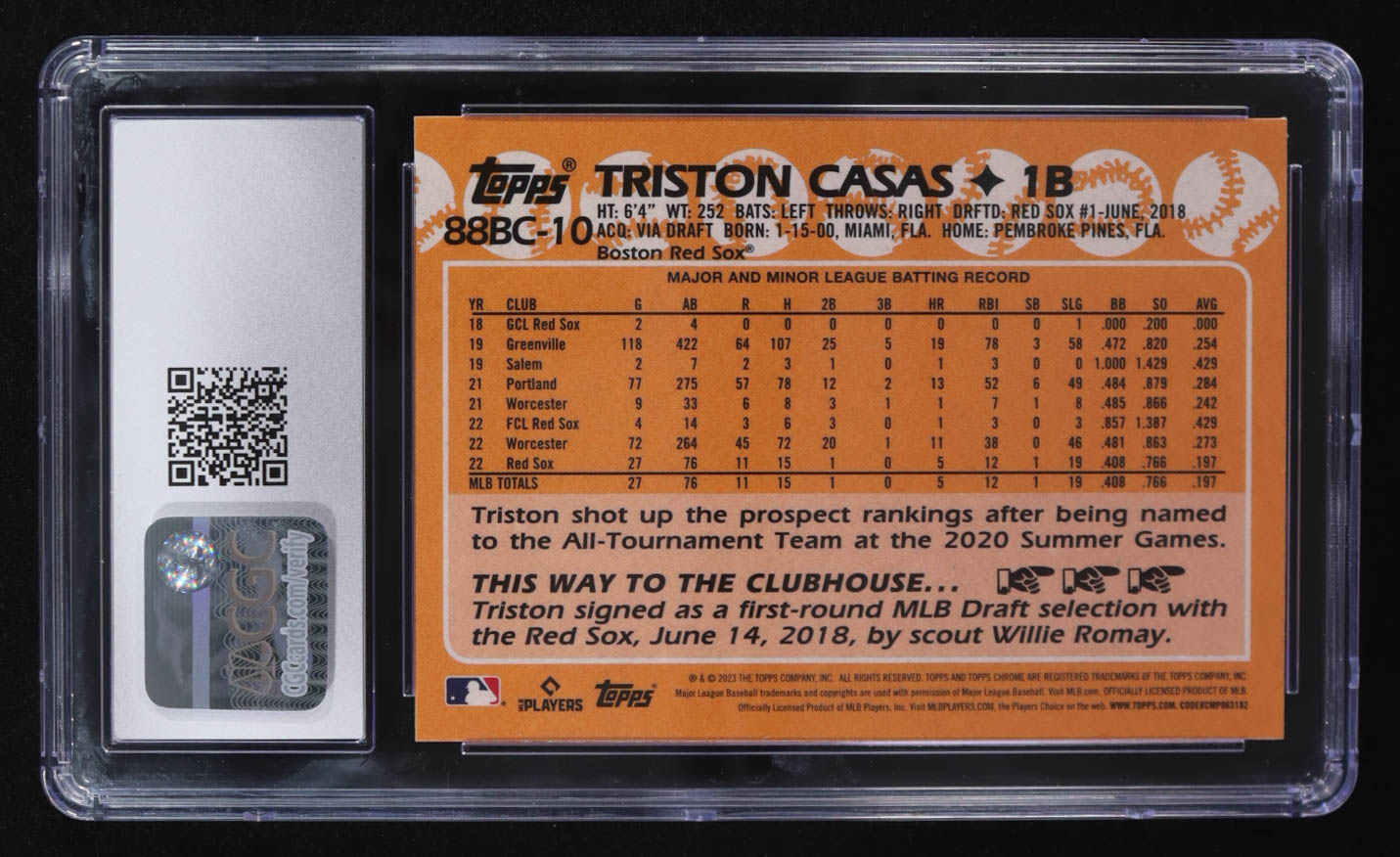 Triston Casas 2023 Topps Chrome '88 Topps 35th Anniversary #88BC-10 RC (CGC 9.5)
