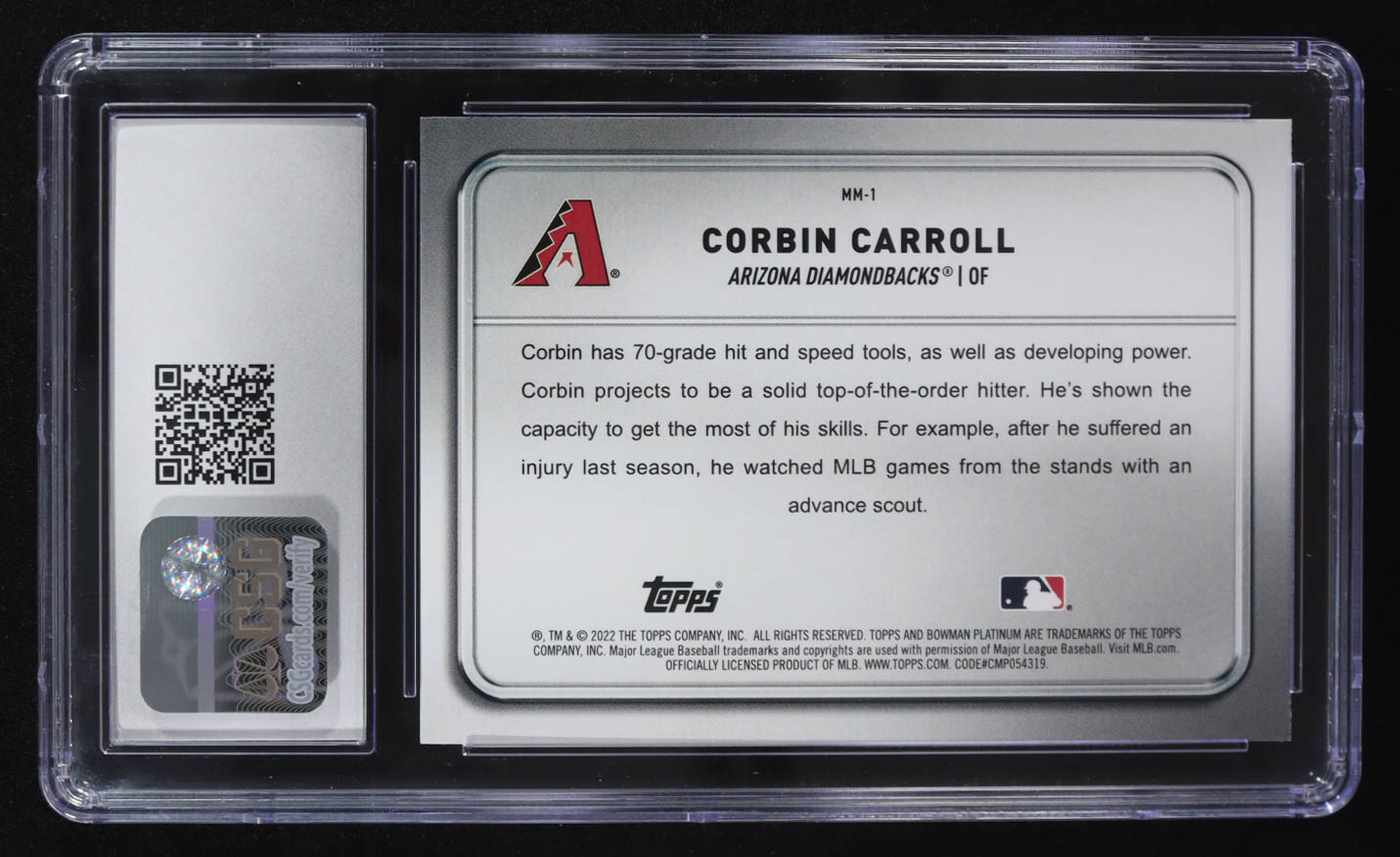 Corbin Carroll 2022 Bowman Platinum Minted in Merit #MM-1 RC (CSG 9.5)