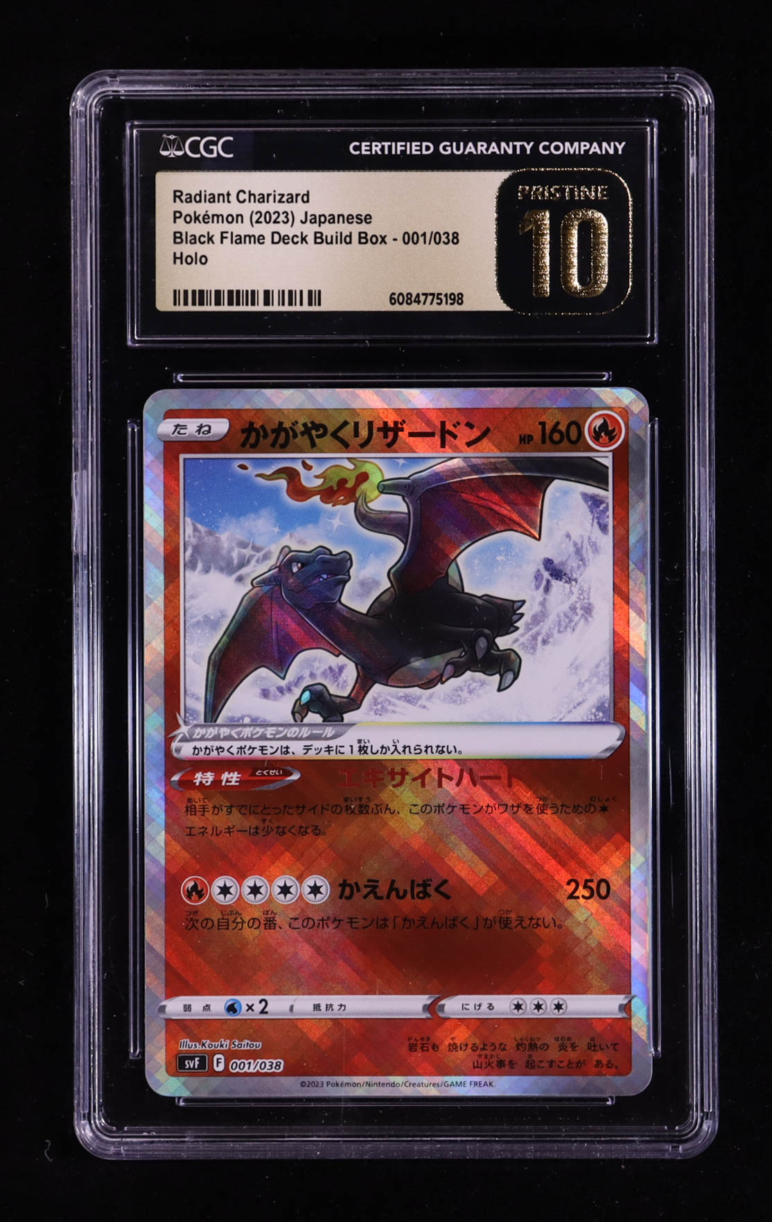 Radiant Charizard 2023 Pokemon Card Game Scarlet & Violet Ruler of the Black Flame Deck Build Box Japanese #001 (CGC 10 | Pristine Black Label)