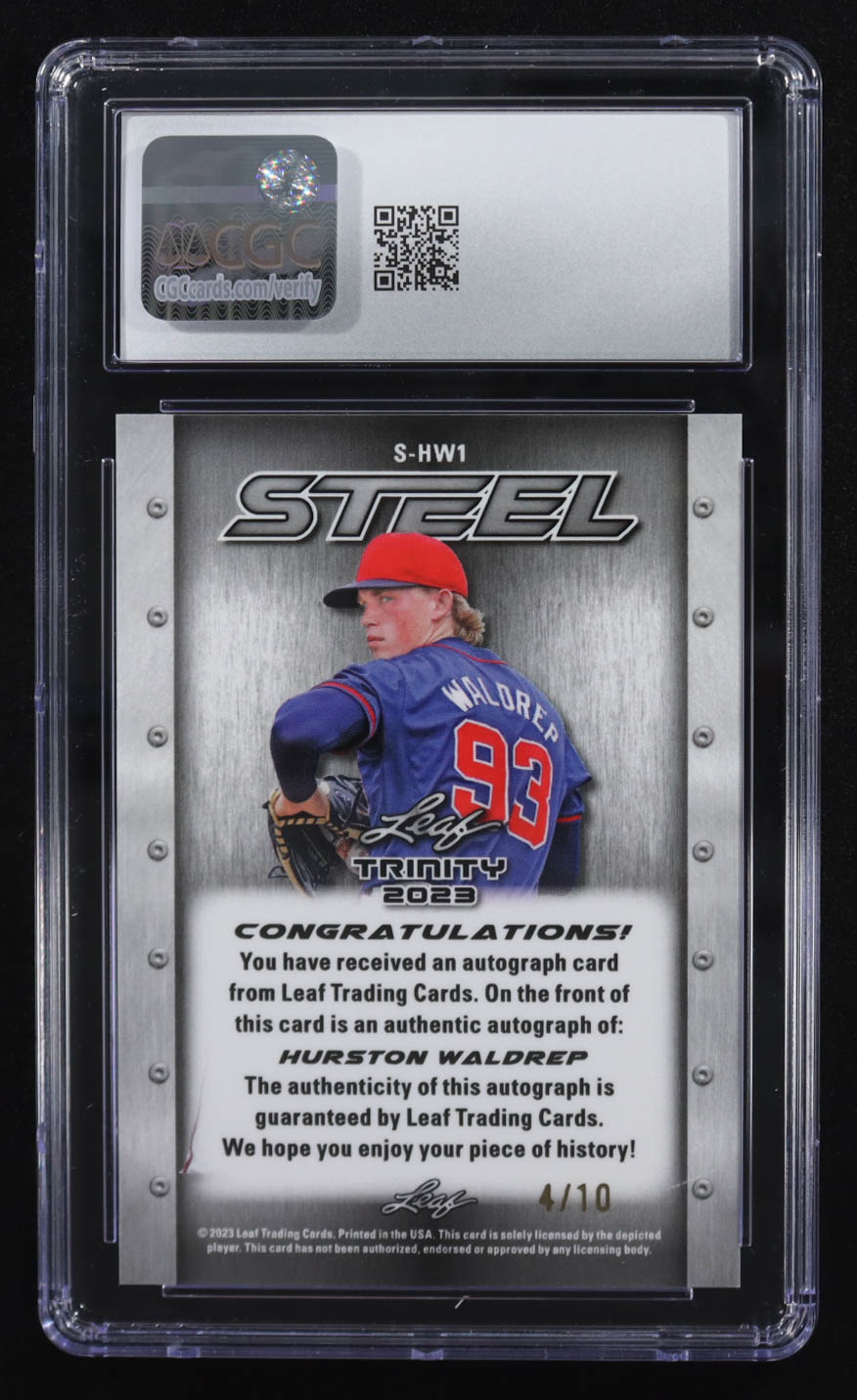 Hurston Waldrep 2023 Leaf Trinity Steel Autographs Lutetium Silver Crystal #S-HW1 RC #4/10 (CGC 9 | Autograph Graded CGC 10)