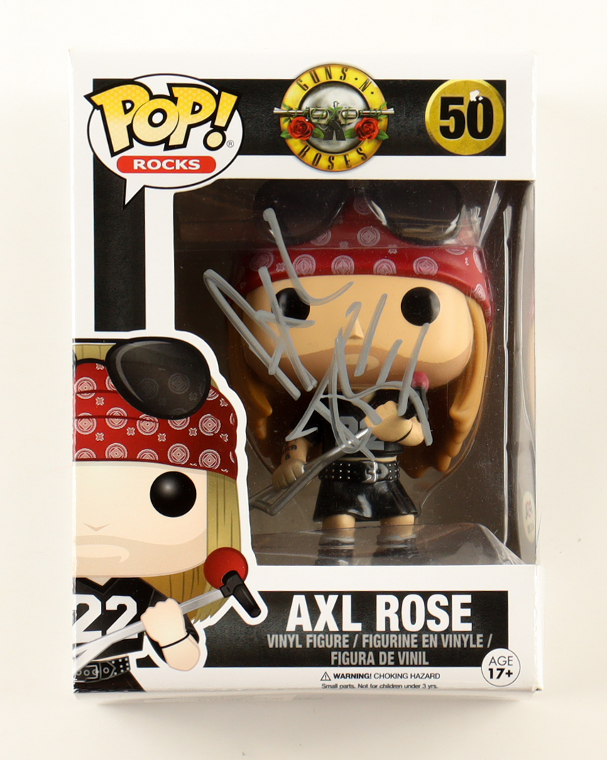 Vinyl figure measures approximately 4" tall and has been hand-signed on the packaging by Axl Rose.