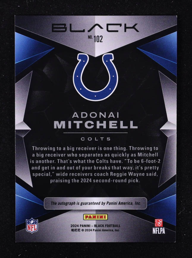 Adonai Mitchell 2024 Panini Black Rookies Autographs Emerald #102 #07/15 RC