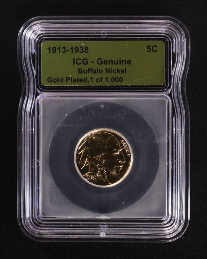 (1913-1938) Buffalo 5C Nickel - Gold Plated Limited Edition Numbered 1 of 1,000 (ICG Genuine)