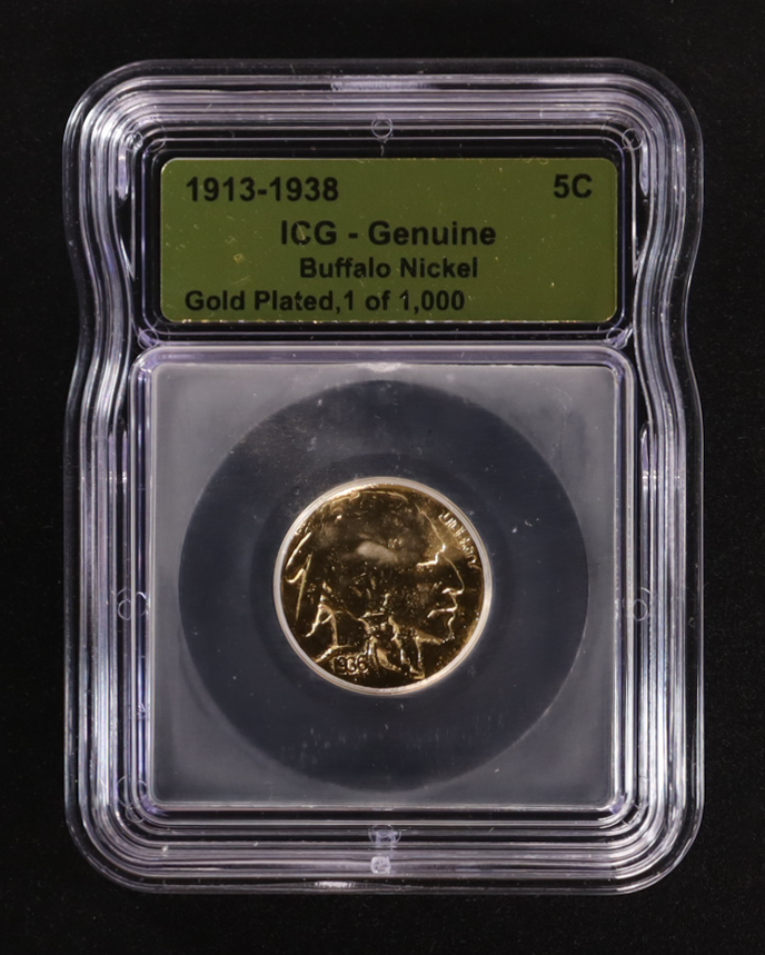 (1913-1938) Buffalo 5C Nickel - Gold Plated Limited Edition Numbered 1 of 1,000 (ICG Genuine)