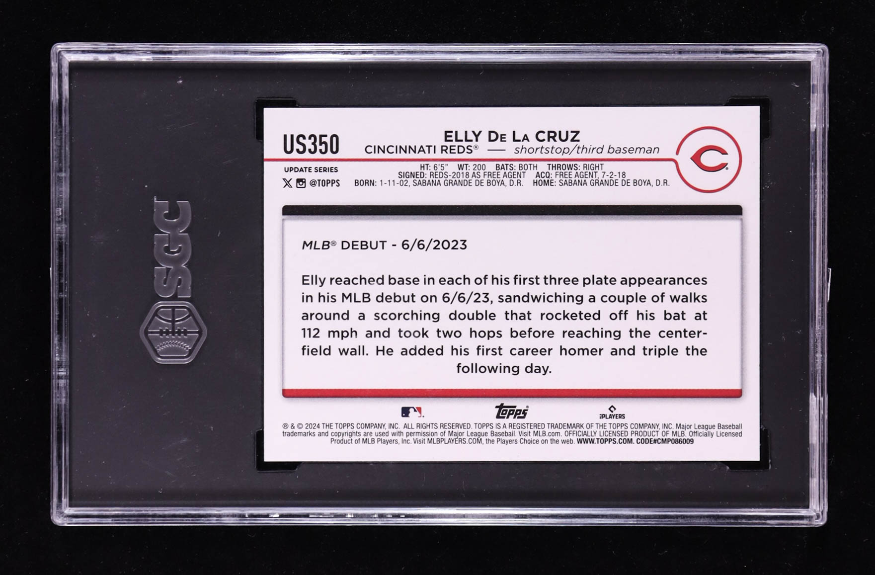 Elly De La Cruz 2024 Topps Update Rainbow Foil #US350 RC (SGC 10)