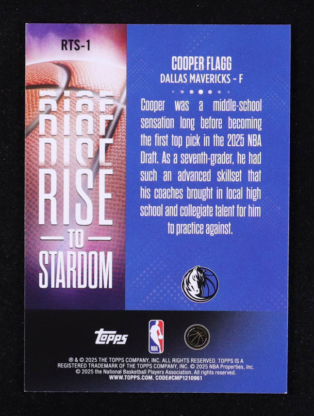 Cooper Flagg 2025-26 Topps Rise to Stardom Rainbow Foilboard #RTS1 RC