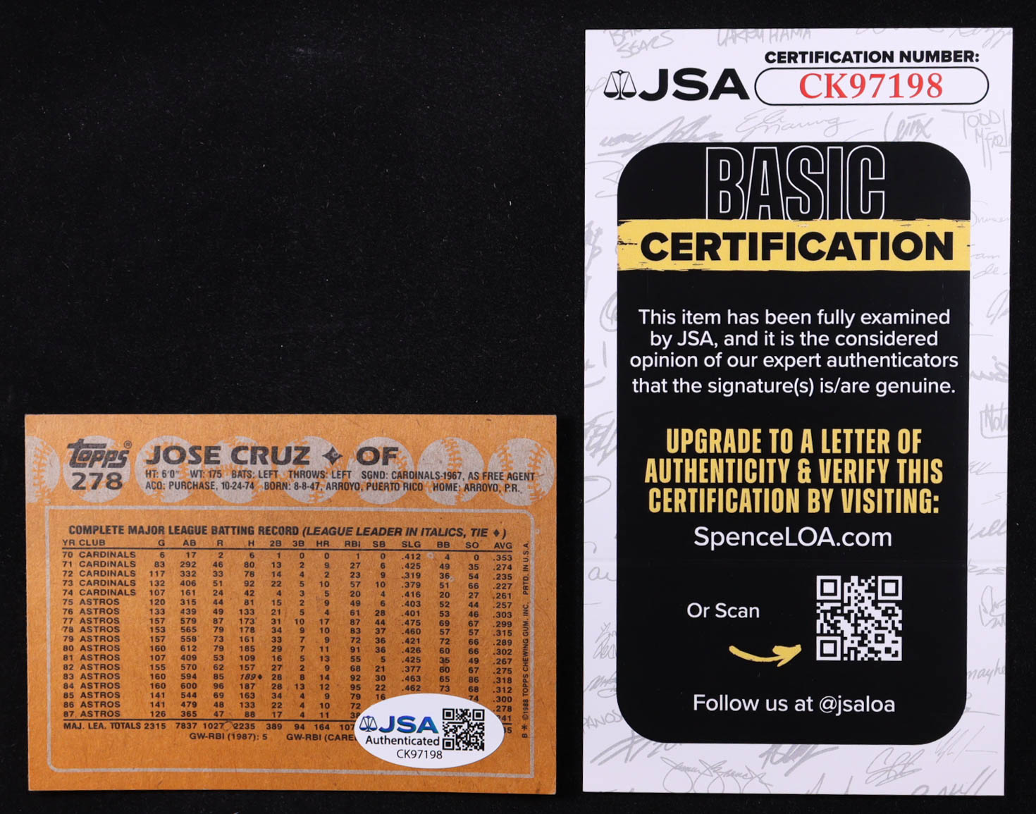 Jose Cruz Signed 1988 Topps #278 (JSA)