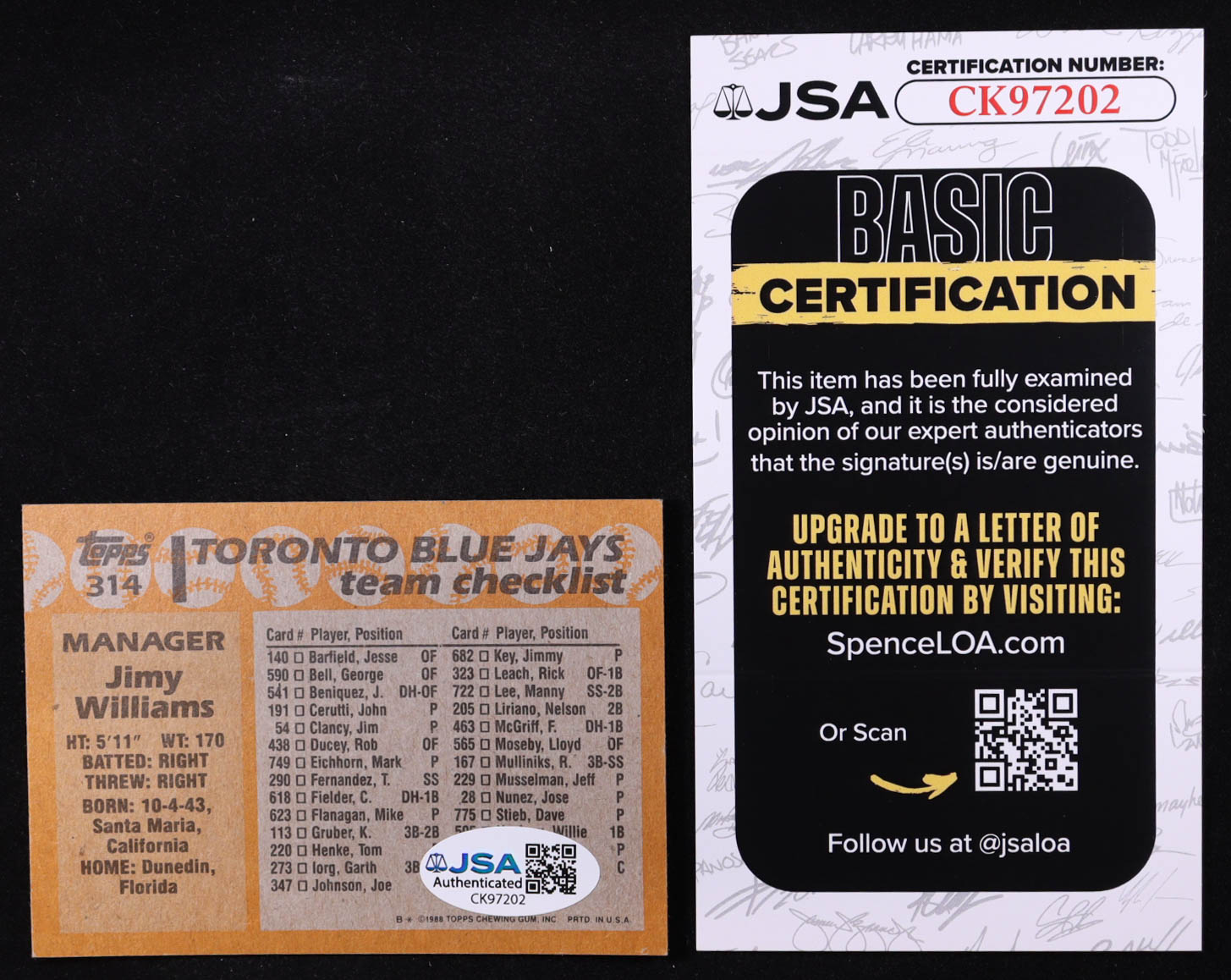 The autograph(s) includes an official James Spence Authentication (JSA) hologram and matching COA for authenticity purposes.