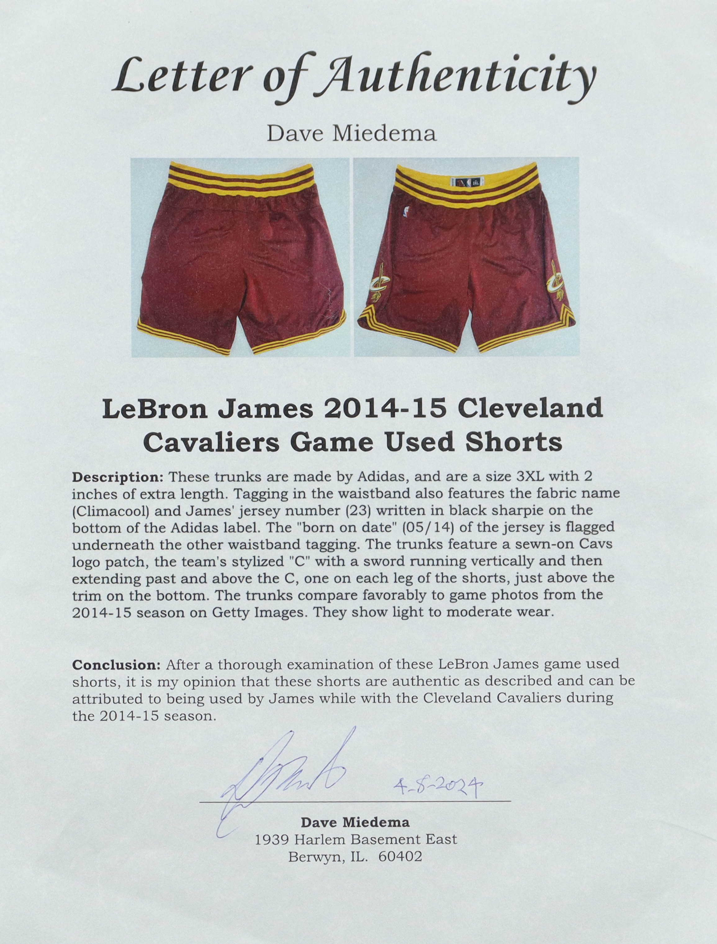 LeBron James Game-Used 2014-15 Cavaliers Adidas Authentic Basketball Shorts (Miedema)