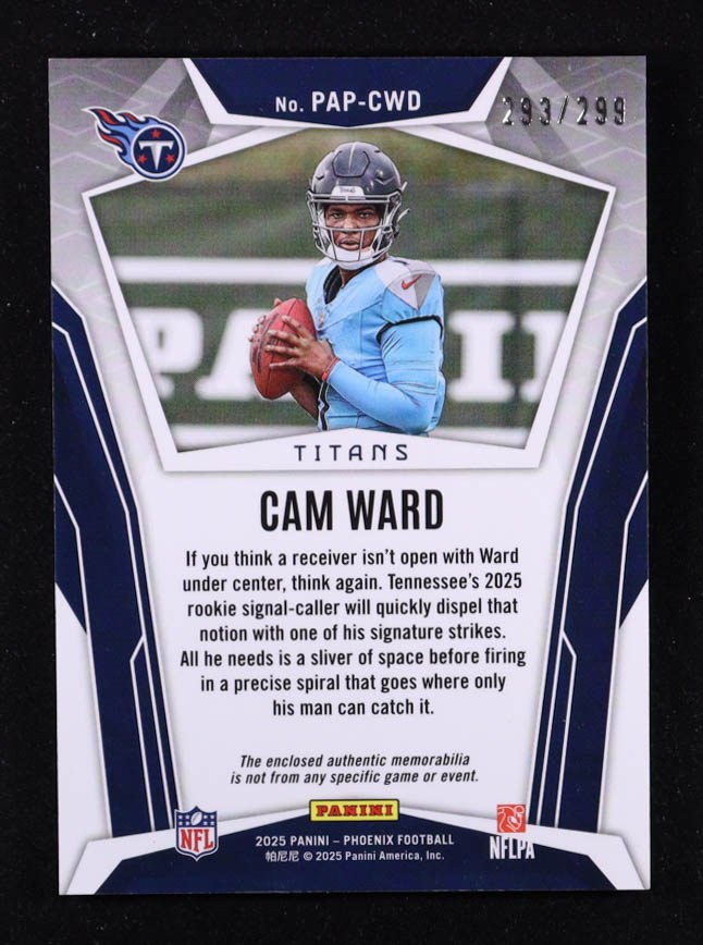 Cam Ward 2025 Panini Phoenix Pandora Patches #20 #293/299 RC