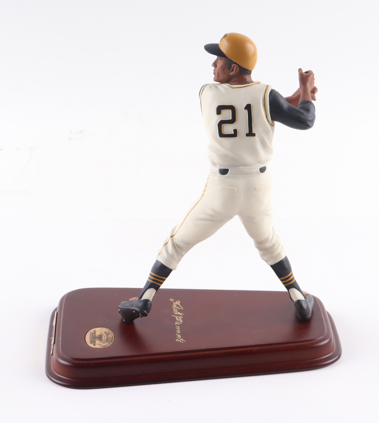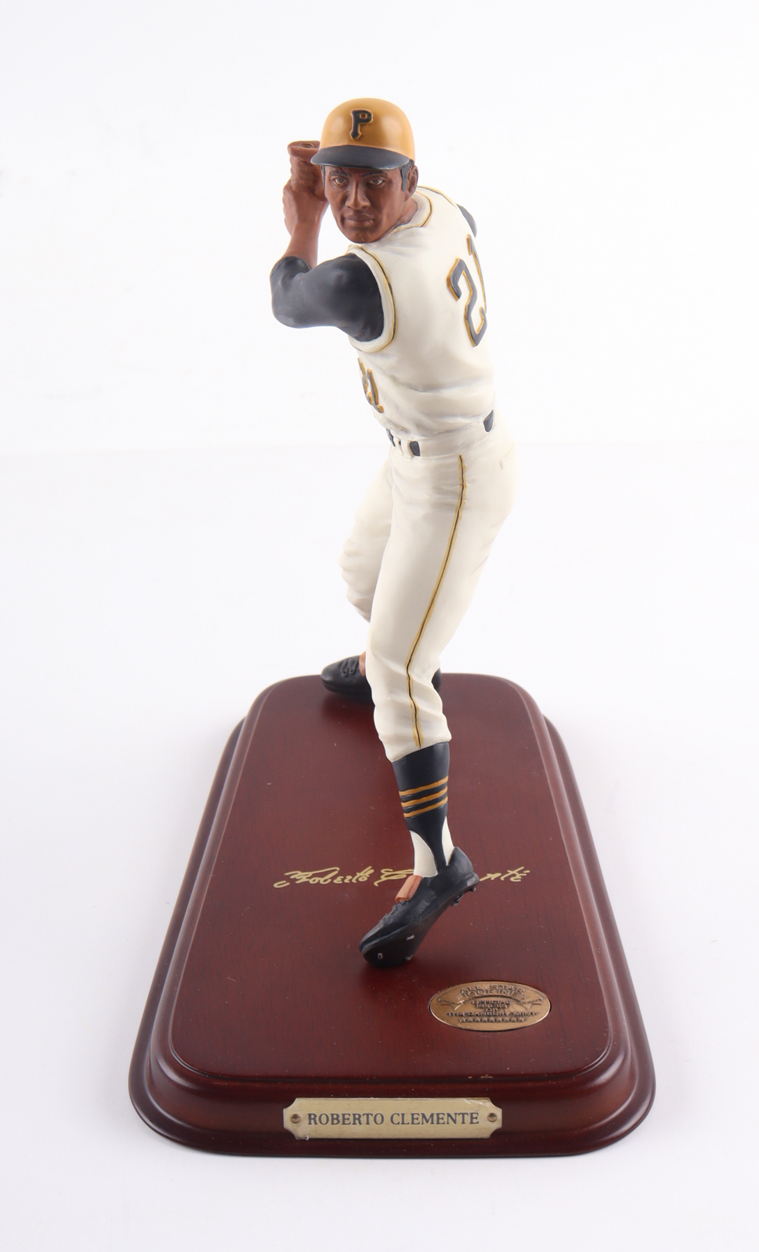 Danbury Mint ceramic figure measures approximately 8" in height and features Roberto Clemente (Pittsburgh Pirates). Please note, that the signature is facsimile.