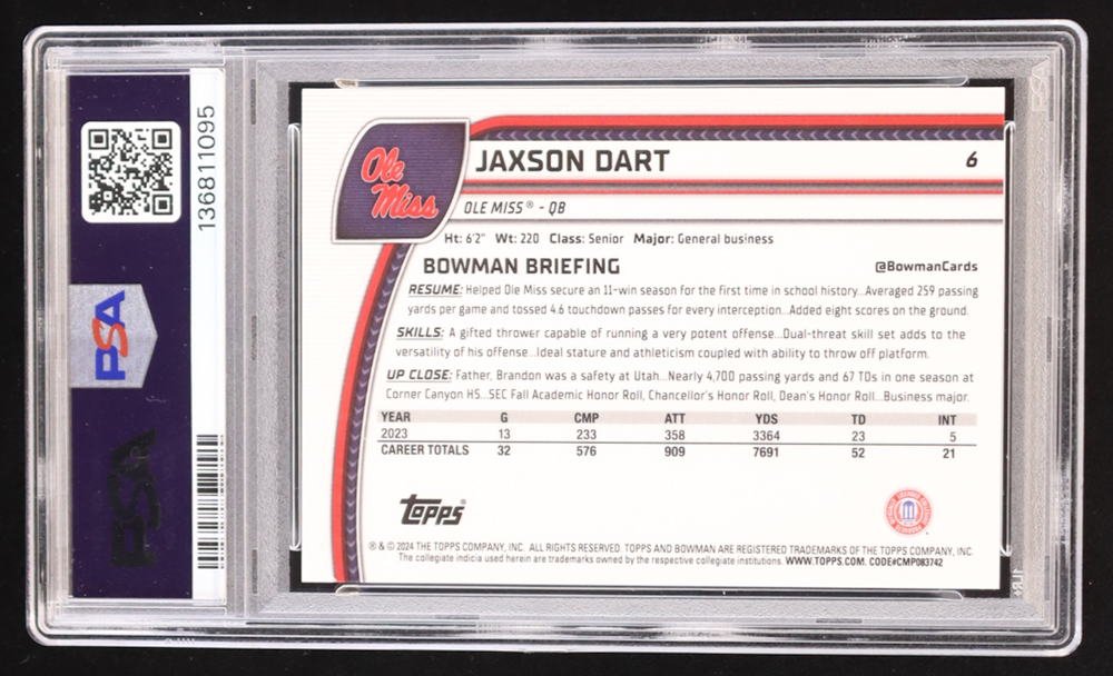 Card has been graded (PSA) 9. Please see photos for details regarding the condition of the card (Ole Miss Rebels).