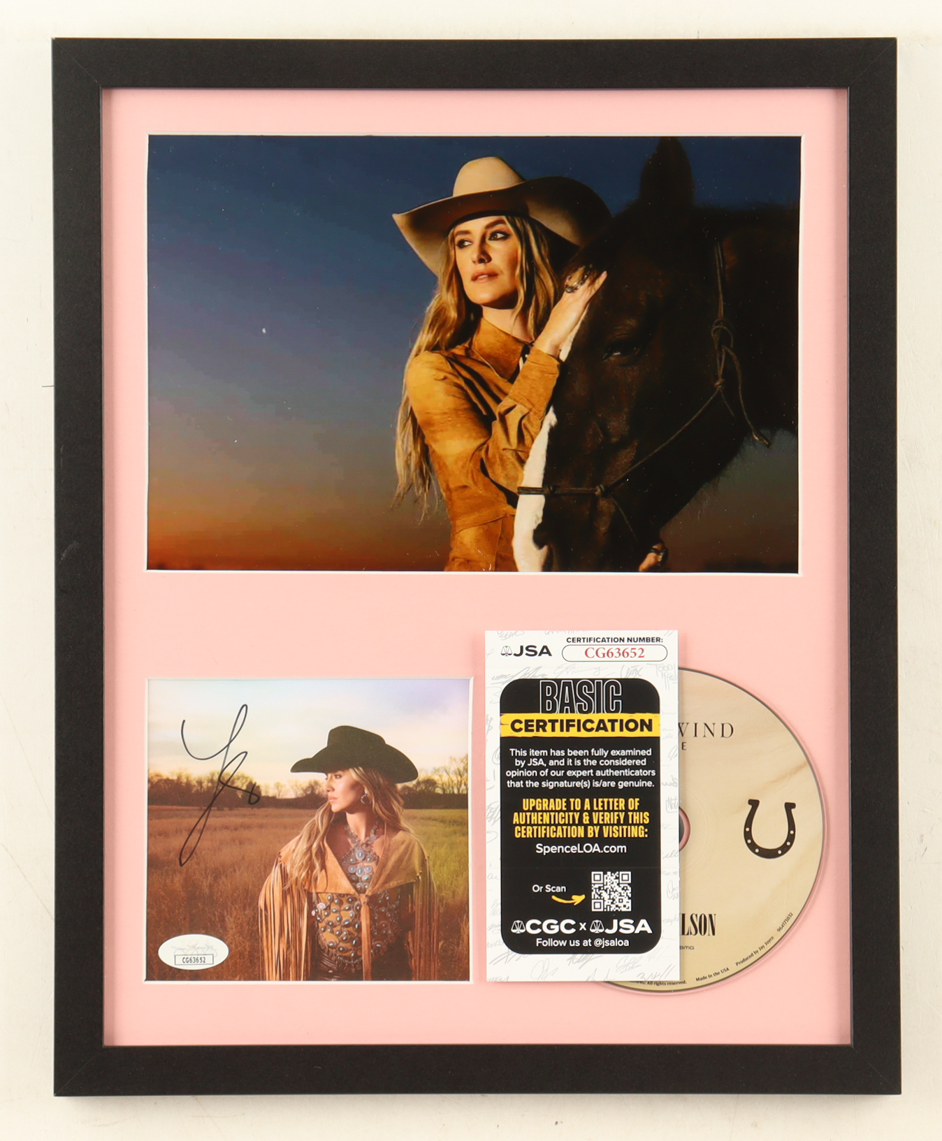 Custom frame measures approximately 12" x 15" in size. Display features a CD album slipcover hand-signed by Lainey Wilson. CD included as shown.