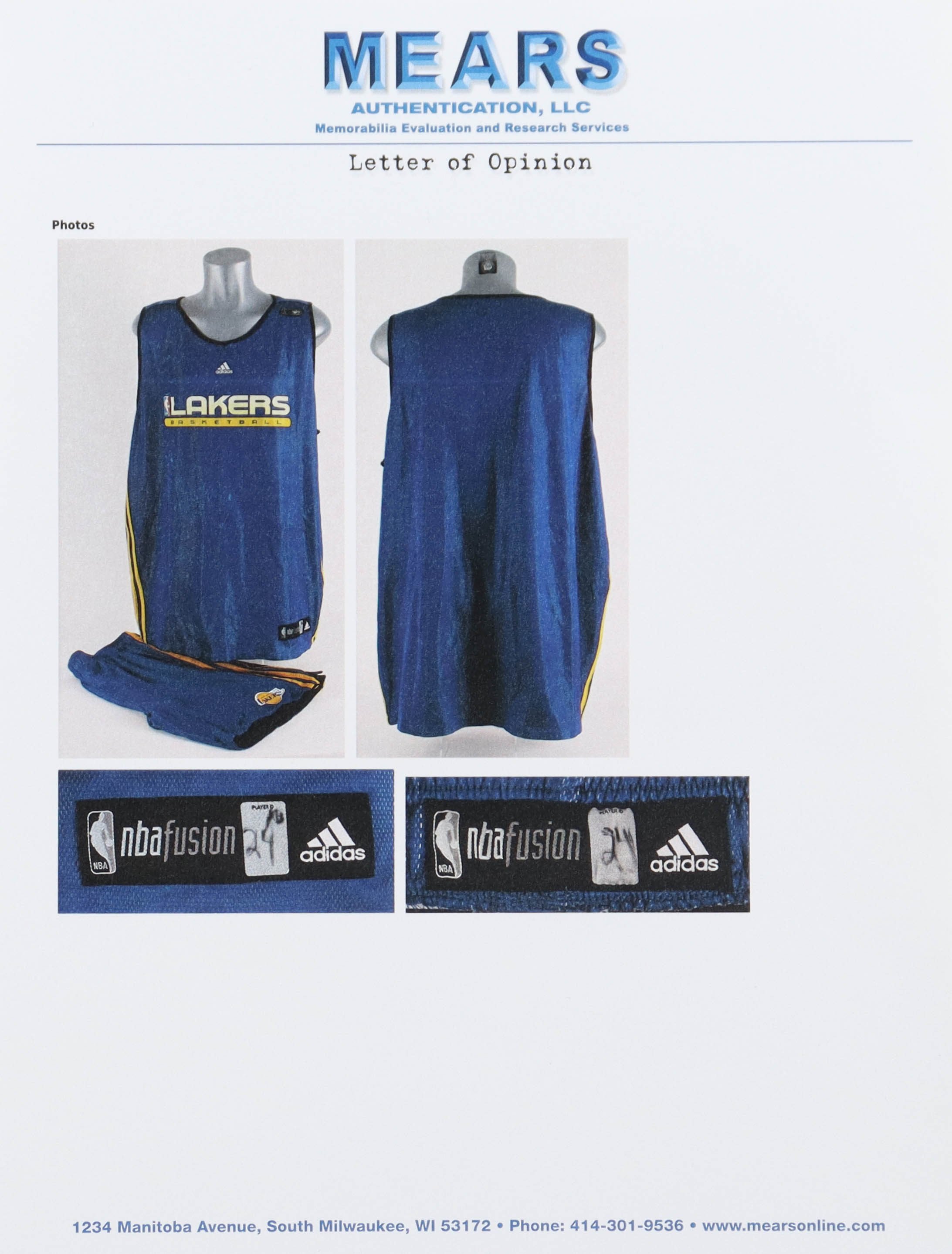 2006-10 Los Angeles Lakers Adidas Retail Practice Jersey & Shorts (MEARS)
