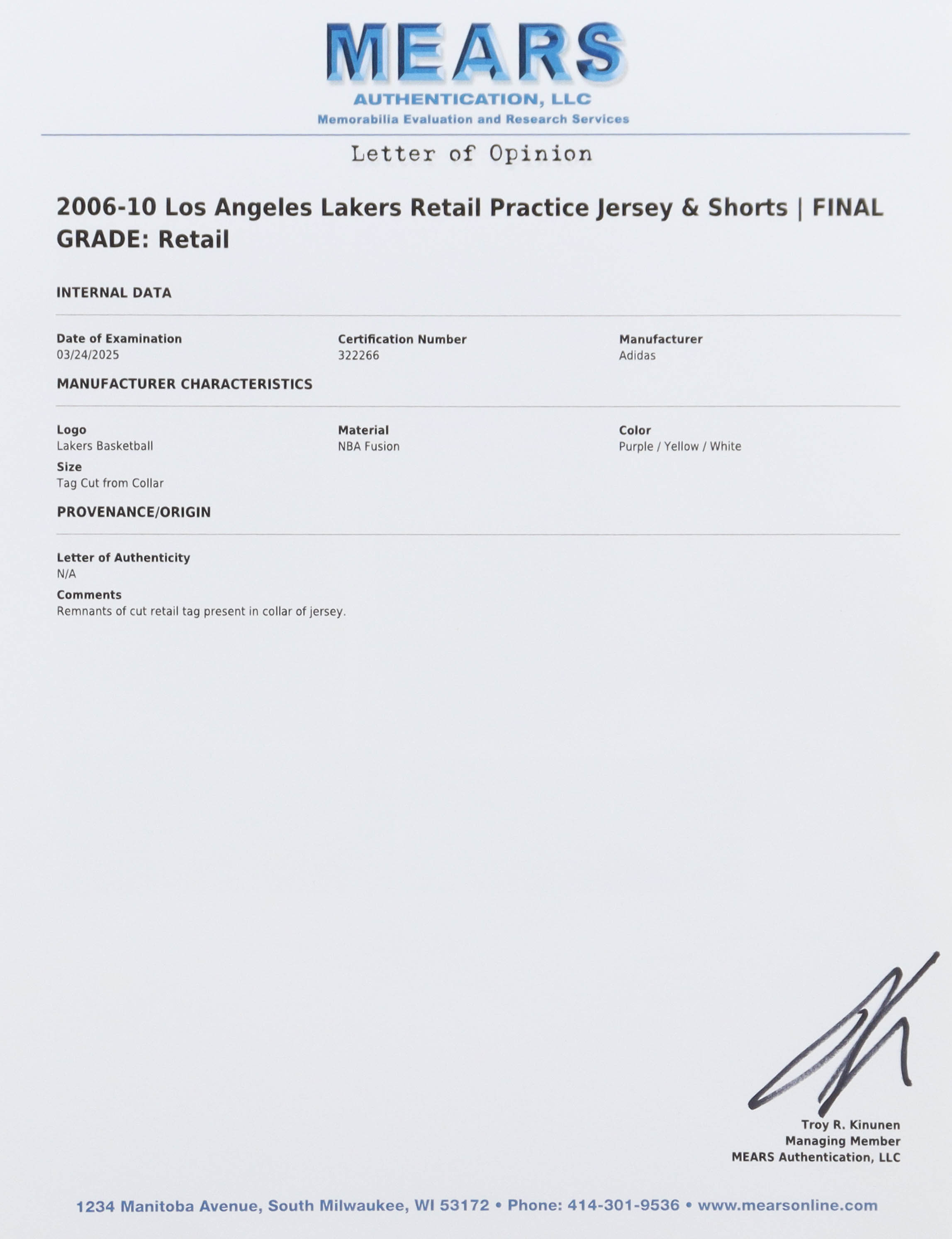 The jersey includes an official MEARS Authentic LOA for authenticity purposes.