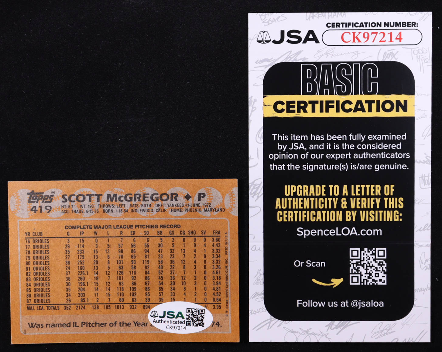 Scott McGregor Signed 1988 Topps #419 (JSA)