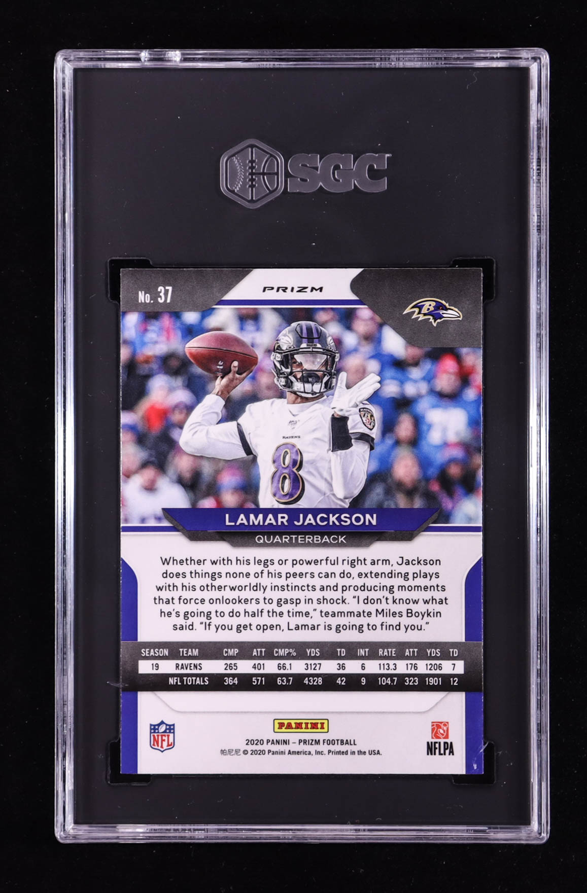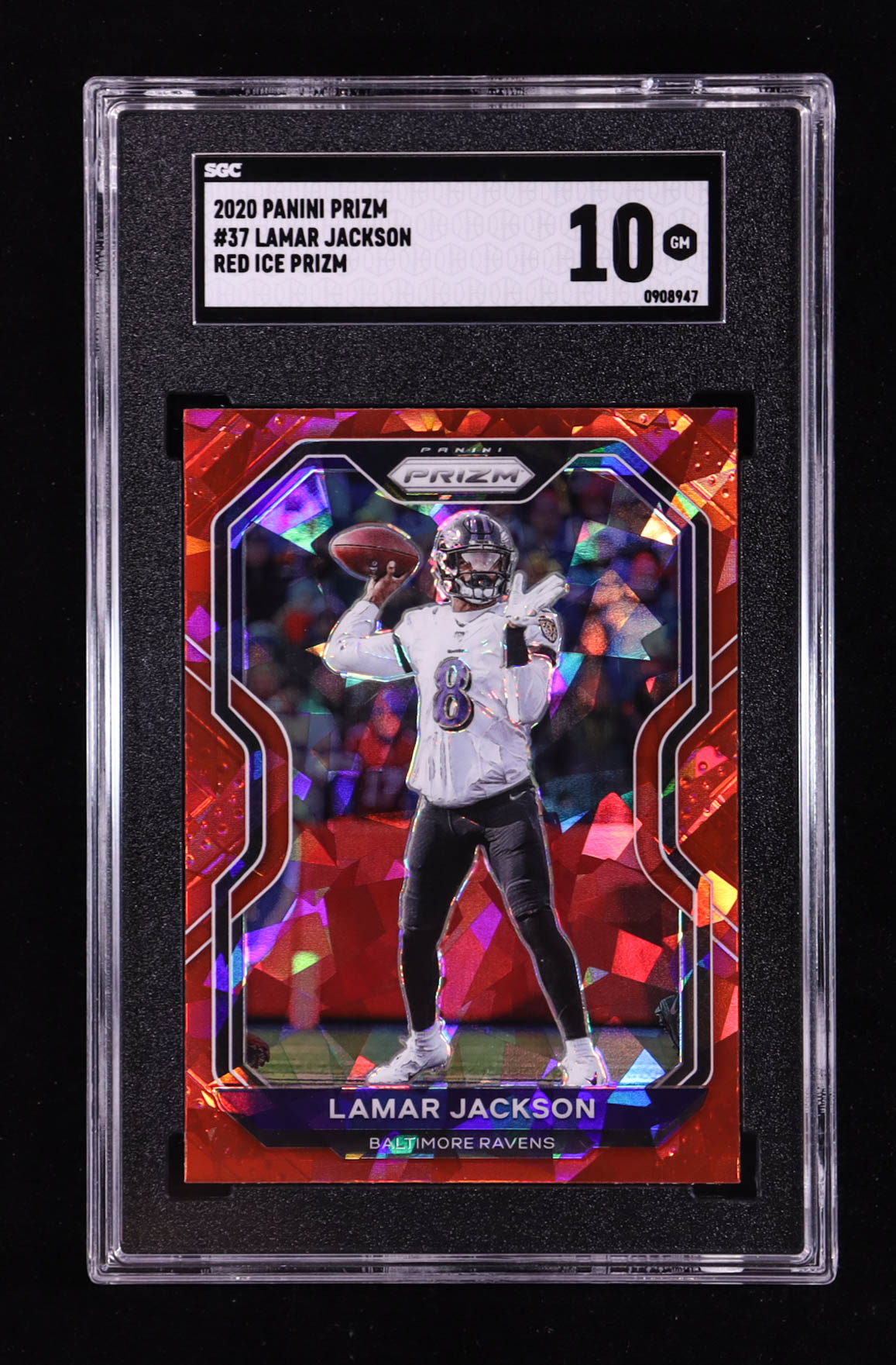 Lamar Jackson 2020 Panini Prizm Prizms Red Ice #37 (SGC 10)