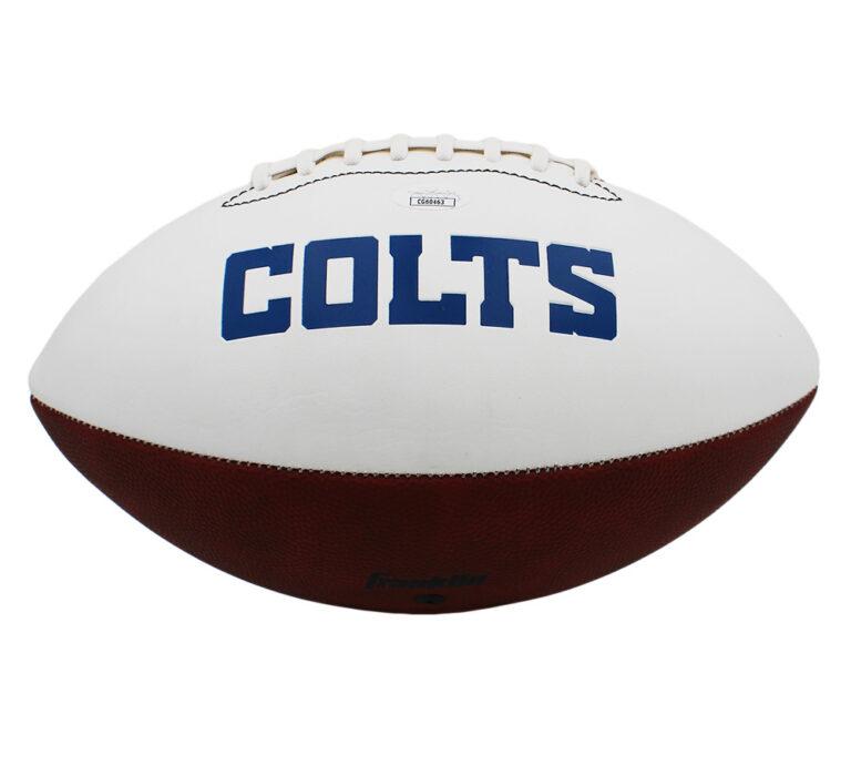 Indianapolis Colts logo football has been hand-signed by Peyton Manning (HOF).