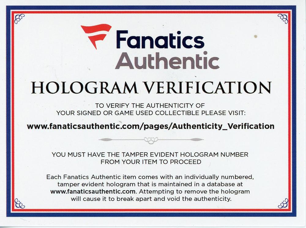The autograph includes an official Fanatics hologram for authenticity purposes.
