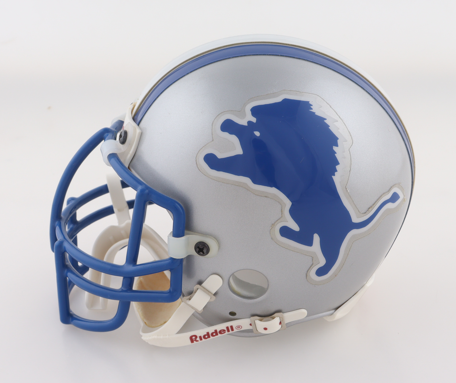 Riddell Detroit Lions Speed mini helmet has been hand-signed by Barry Sanders (HOF).