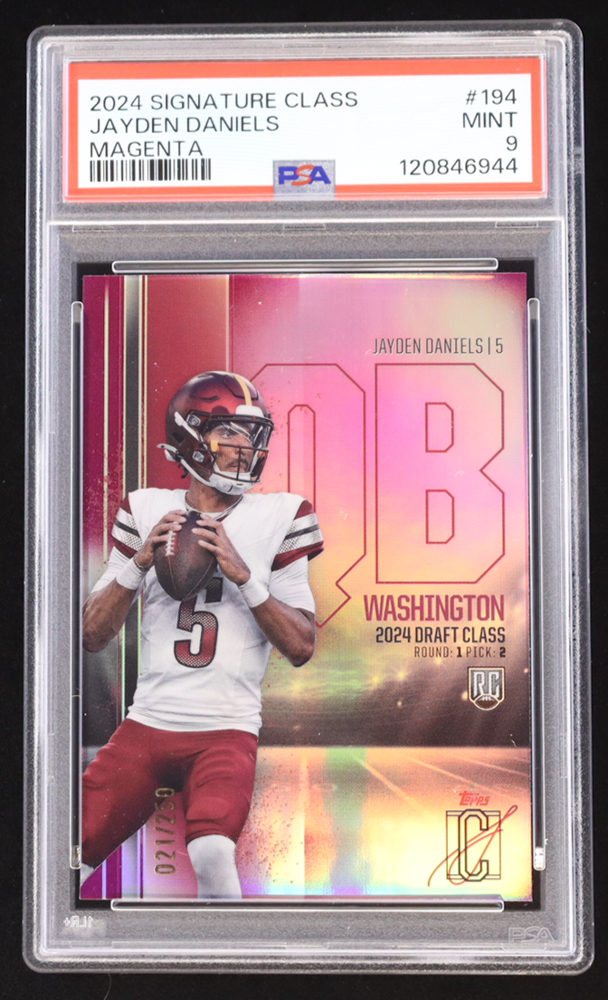 Jayden Daniels 2024 Topps Signature Class Magneta #194 RC #021/250 (PSA 9)