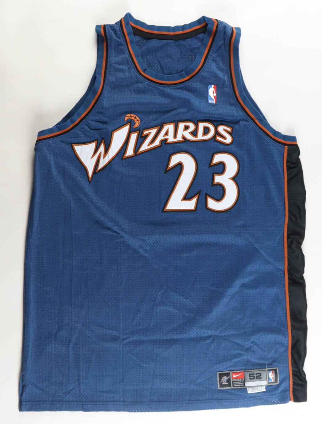 Nike jersey, size 52 (Length +4). The jersey was worn in game during the 2002-2003 season by basketball icon, Michael Jordan (Washington Wizards, HOF).