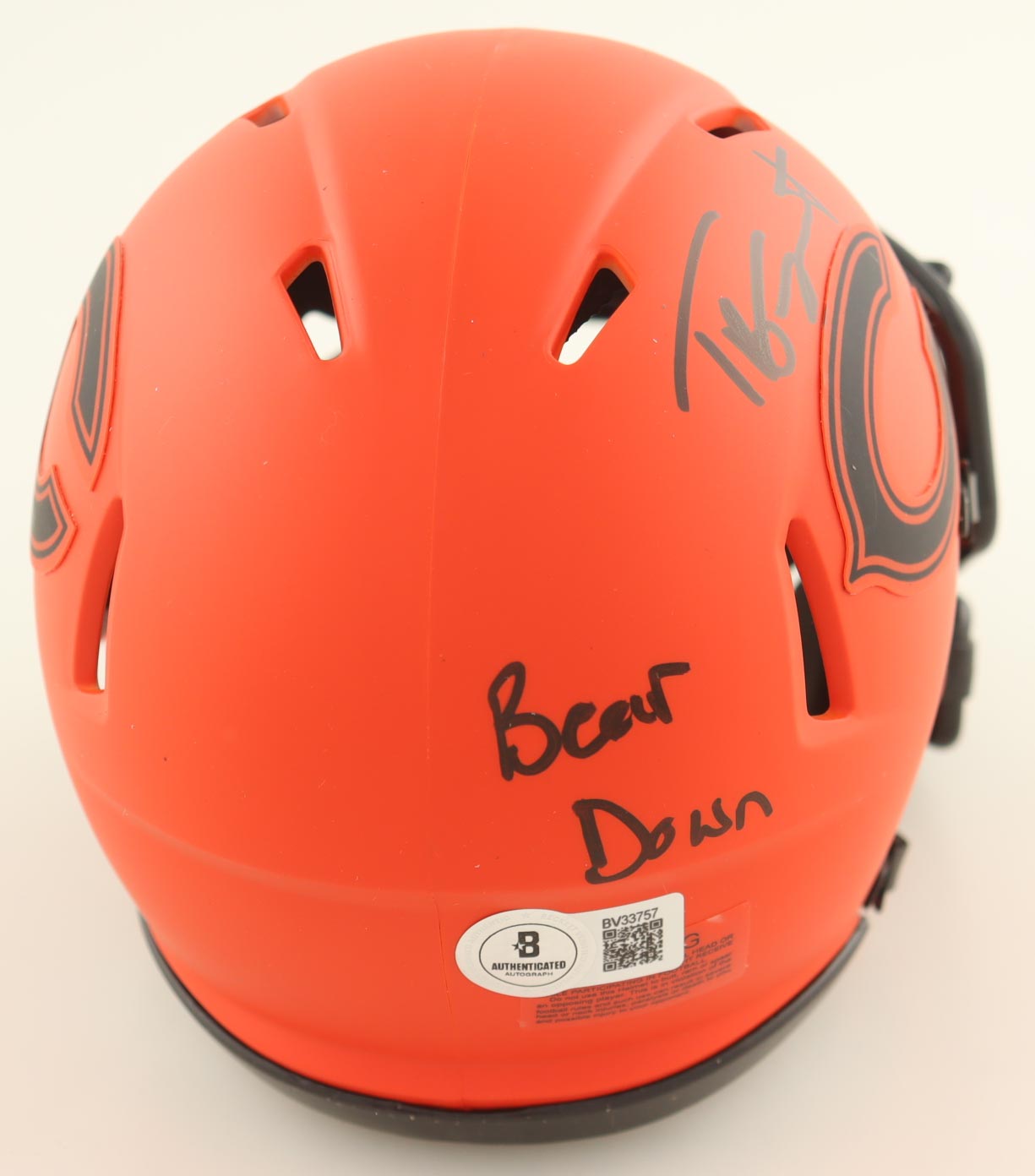 Riddell Chicago Bears Rave Alternate Speed mini helmet. Hand-signed and inscribed by Tyson Bagent.