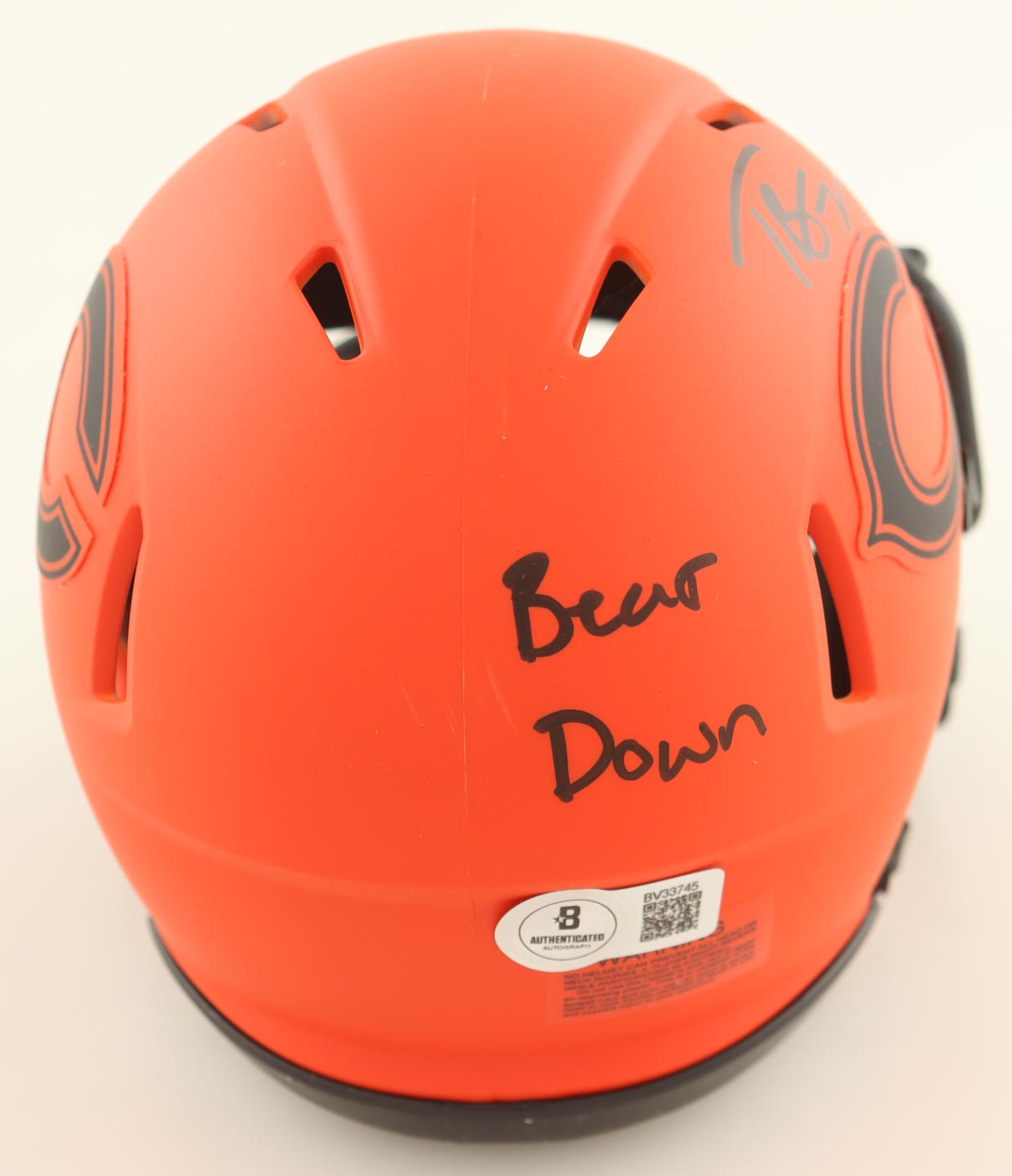 Riddell Chicago Bears Rave Alternate Speed mini helmet. Hand-signed and inscribed by Tyson Bagent.