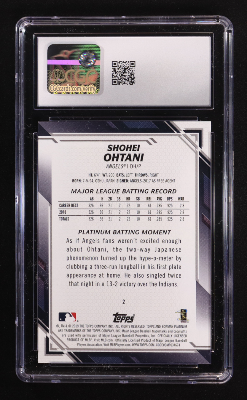 Shohei Ohtani 2019 Bowman Platinum Orange #2 #07/25 (CGC 10)