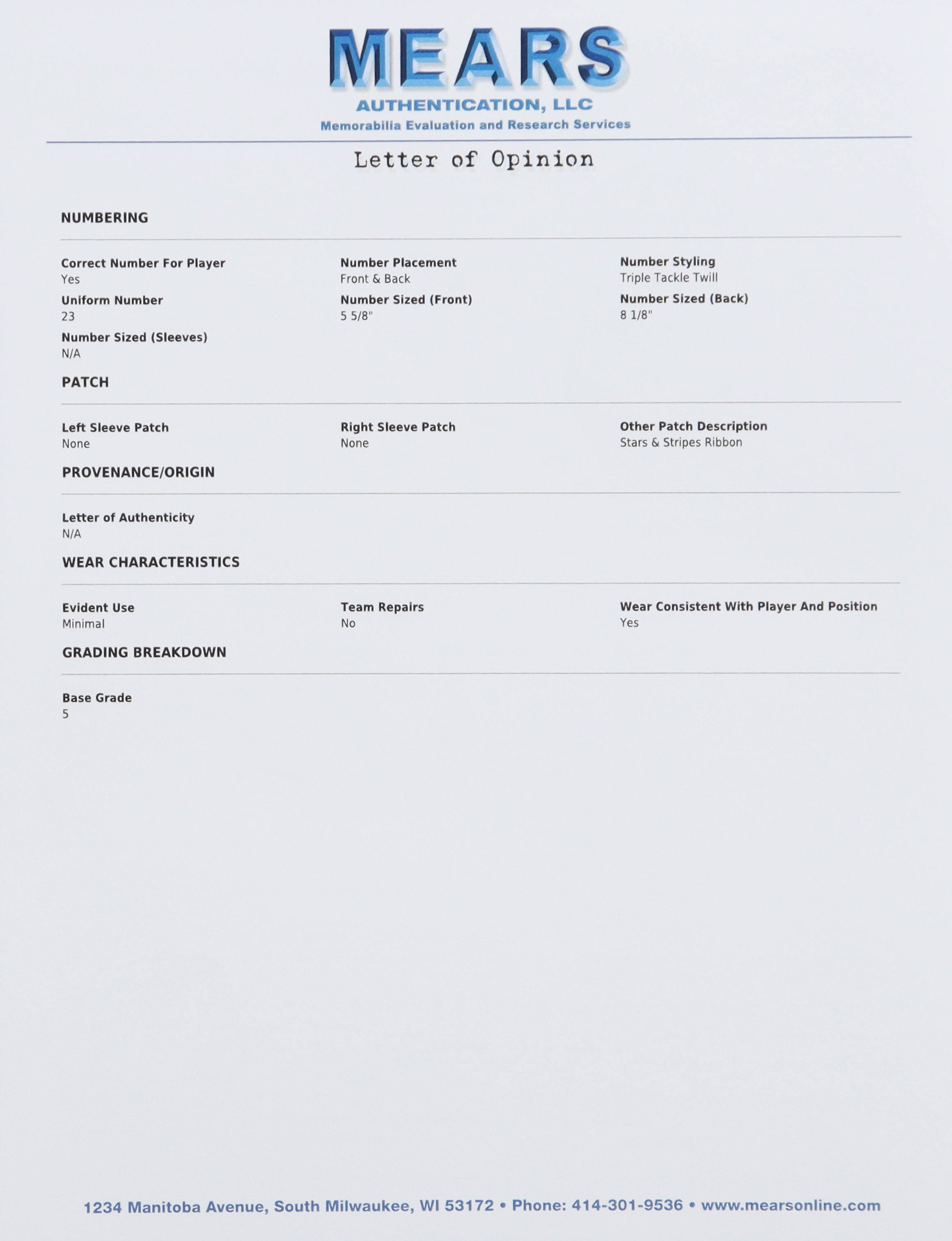The jersey includes an official MEARS Authentic LOA for authenticity purposes.