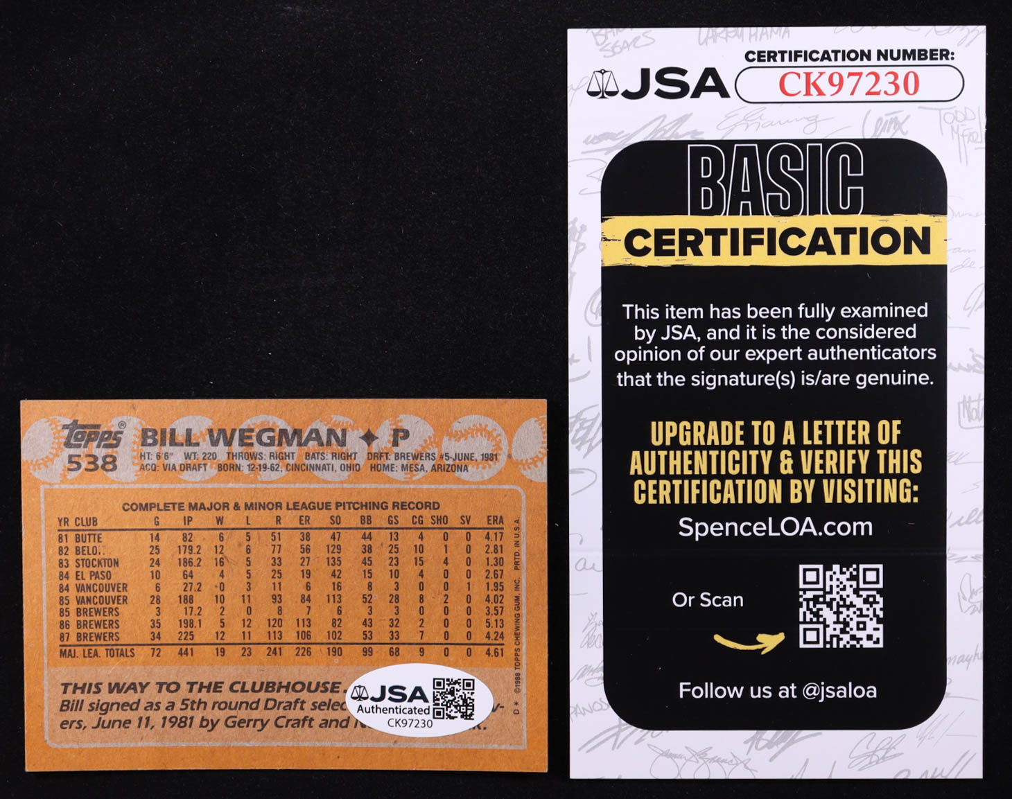 Bill Wegman Signed 1988 Topps #538 (JSA)
