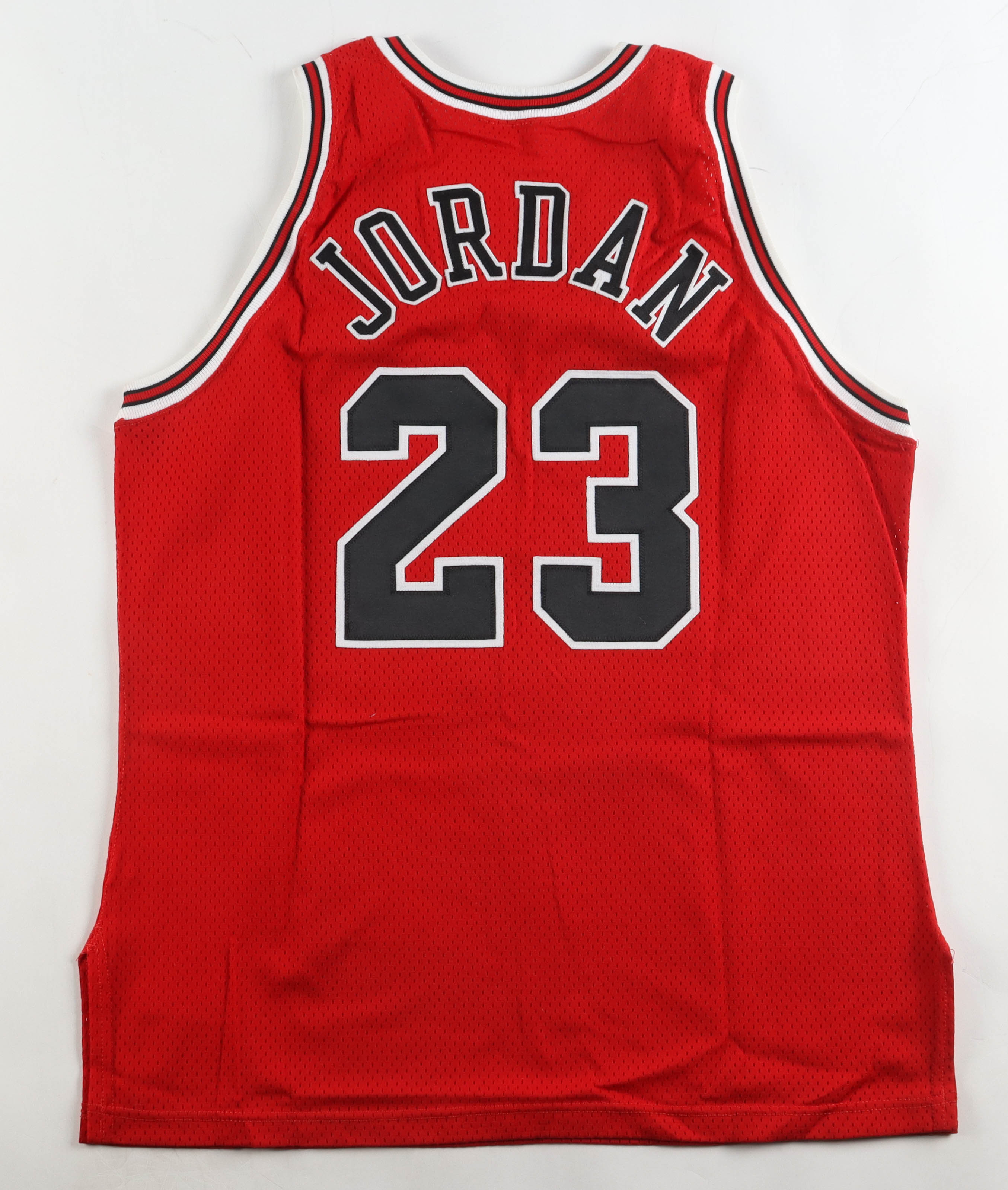 Authentic Champion jersey. Everything sewn on, size 48. Hand-signed by Bulls legend, Michael Jordan! (Chicago Bulls, HOF).