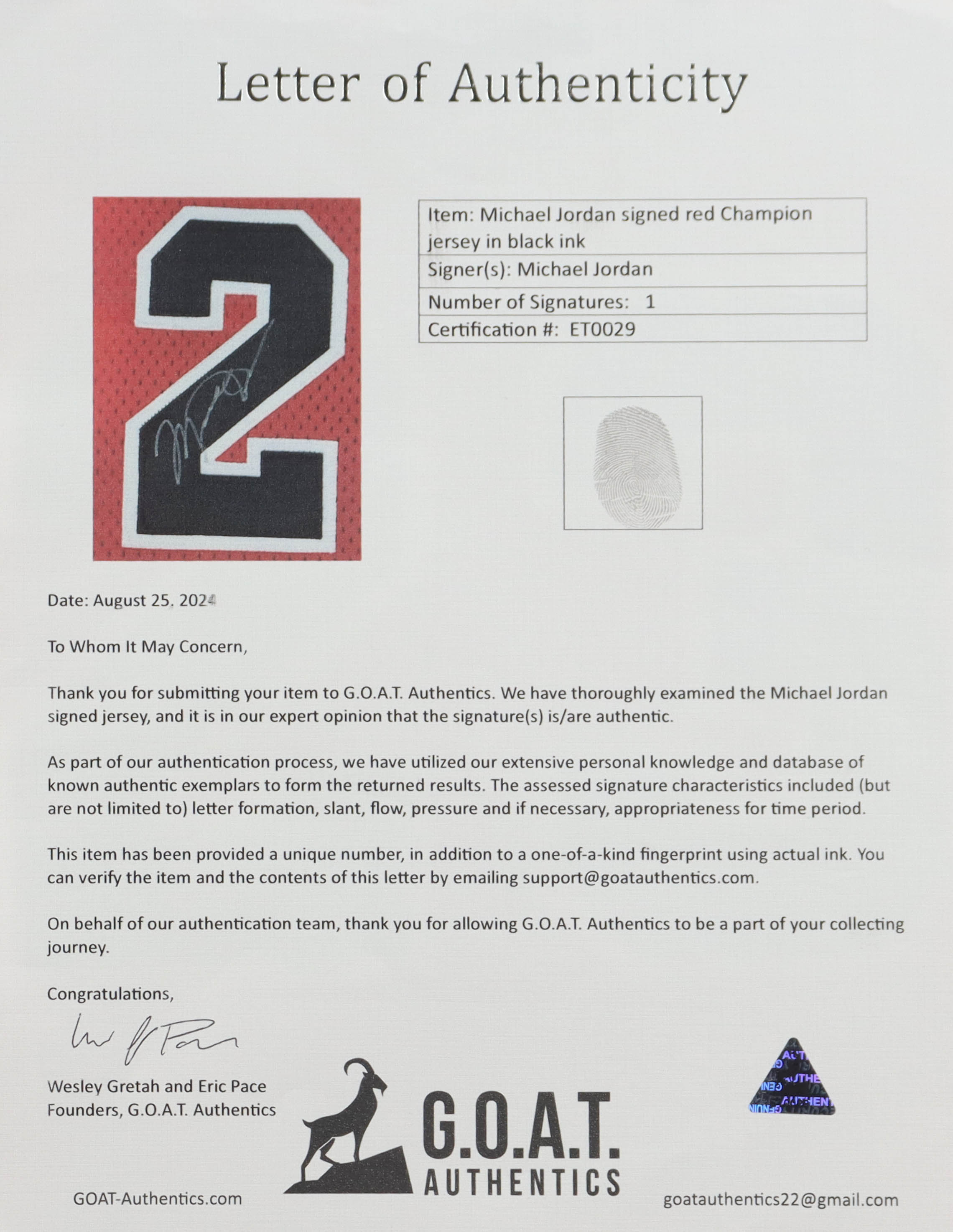 This Michael Jordan autograph has been reviewed and approved by G.O.A.T. Authentics, who are widely recognized as the foremost expert in Michael Jordan autographs.