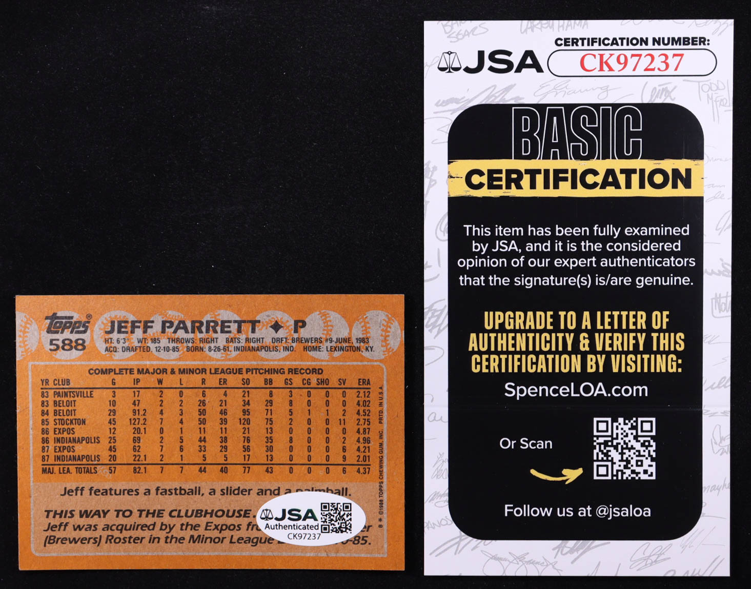 Jeff Parrett Signed 1988 Topps #588 (JSA)