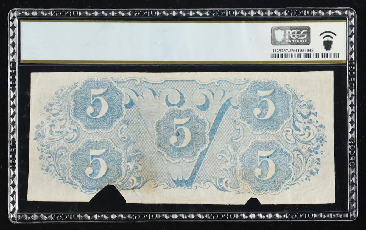 1863 Confederate $5 Currency Note, 3rd Series T-60 (PCGS Very Fine 35)