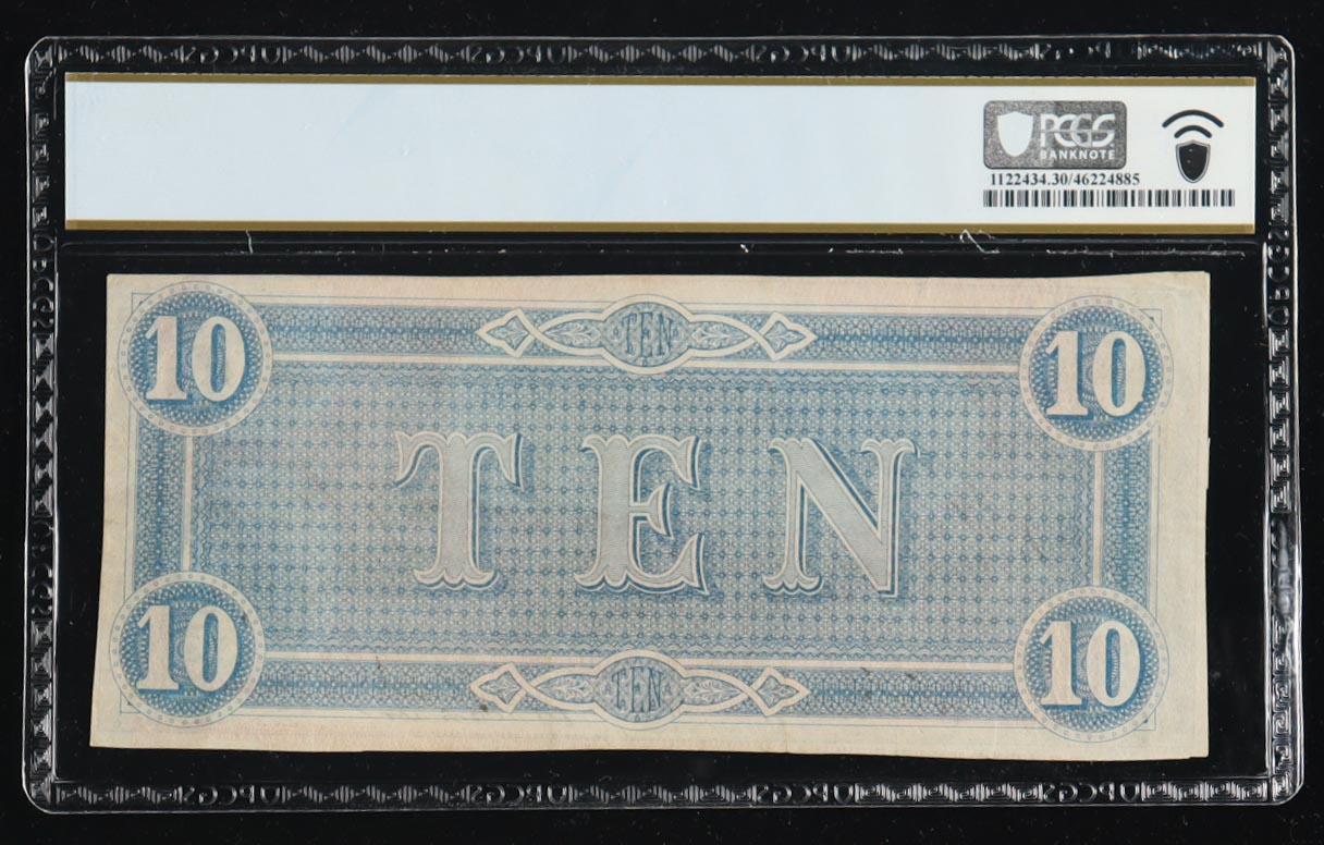 1864 Confederate $10 Currency Note T-68, 1st Series in Roman Letters (PCGS Very Fine 30 PPQ)