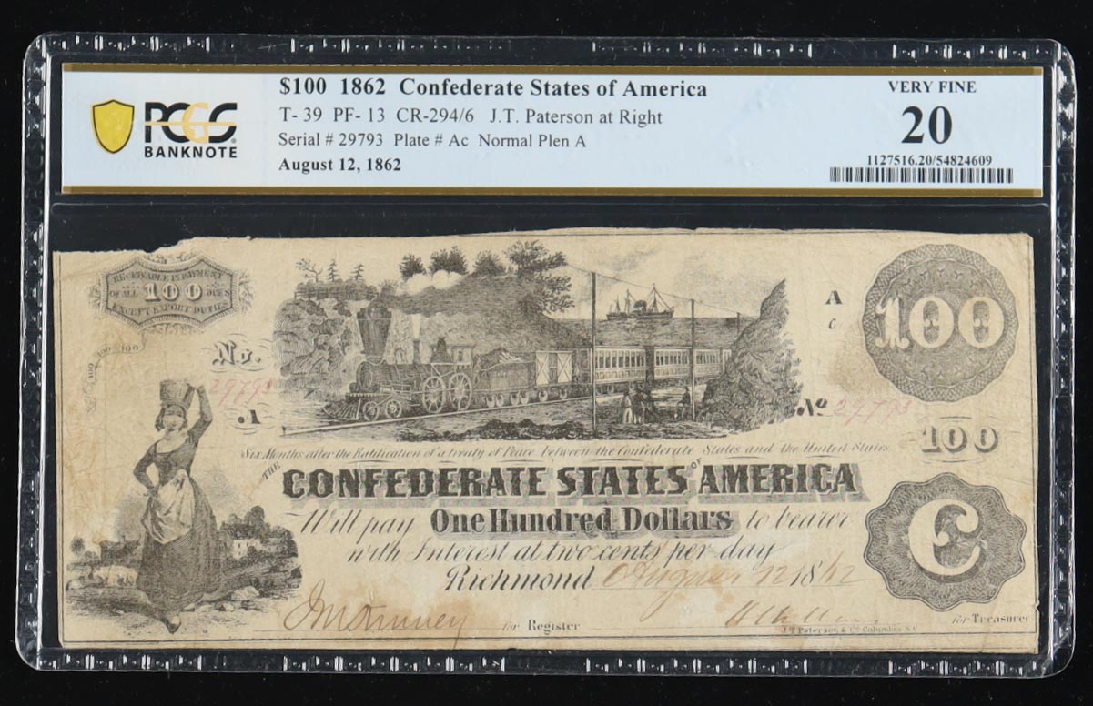 1862 Confederate $100 Currency Note, T-39 (PCGS Very Fine 20)