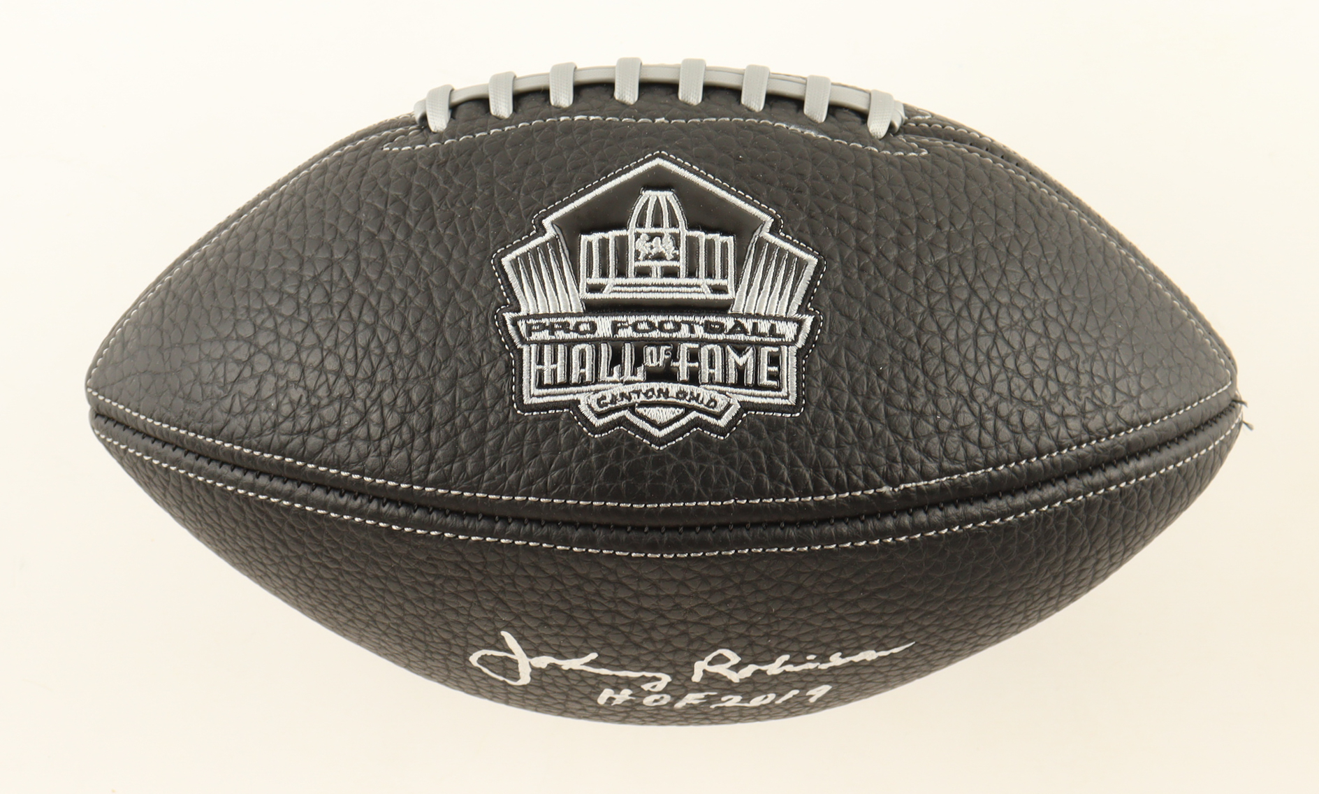 Rawlings NFL Hall of Fame Logo Football. Hand-signed and inscribed by Johnny Robinson (Kansas City Chiefs, HOF).