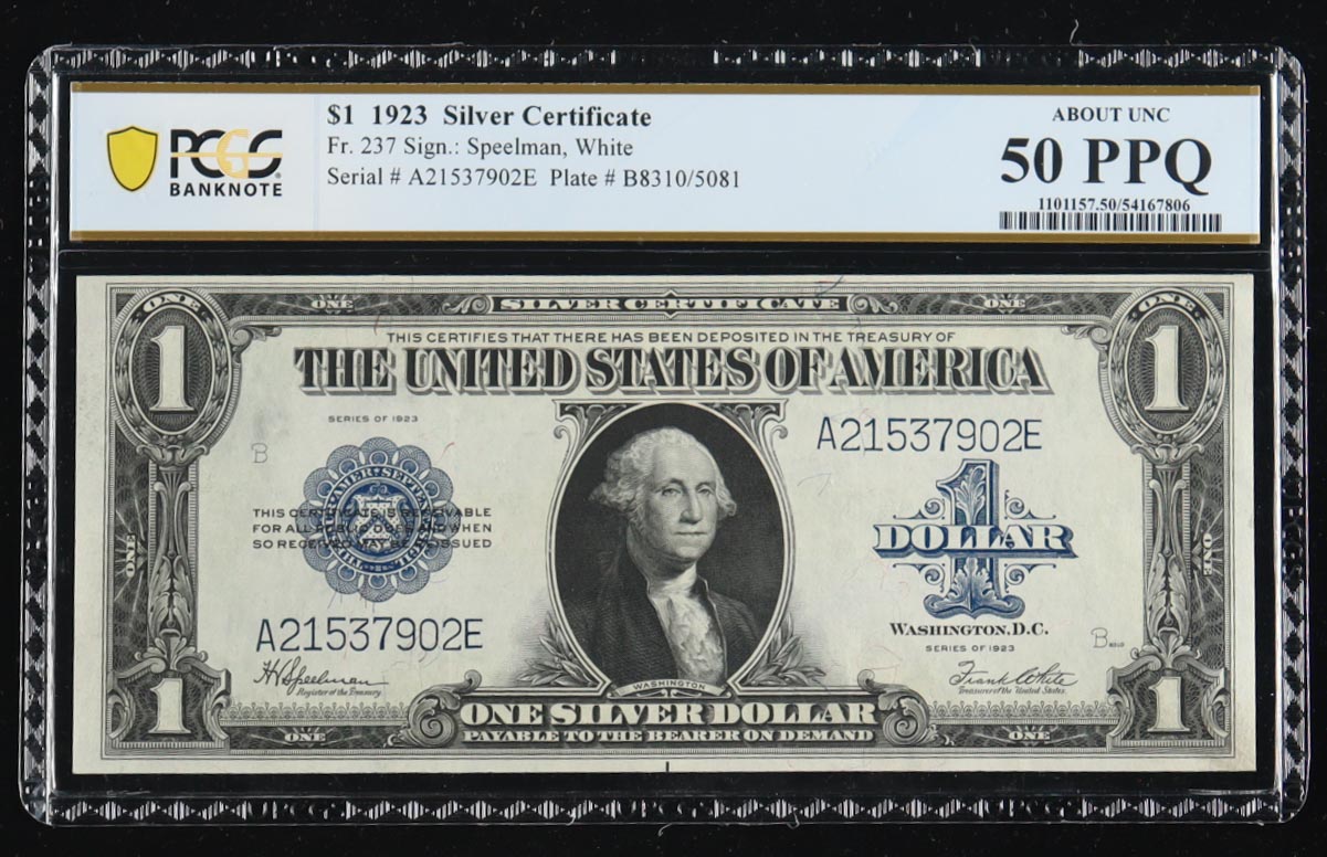1923 U.S. $1 "Horse Blanket" Silver Certificate - Fr. 237 Signed: Speelman / White (PCGS About Unc 50 PPQ)