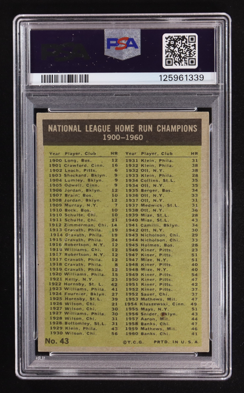 Ernie Banks / Hank Aaron / Ed Mathews / Ken Boyer 1961 Topps NL Home Run Leaders #43 (PSA 4)