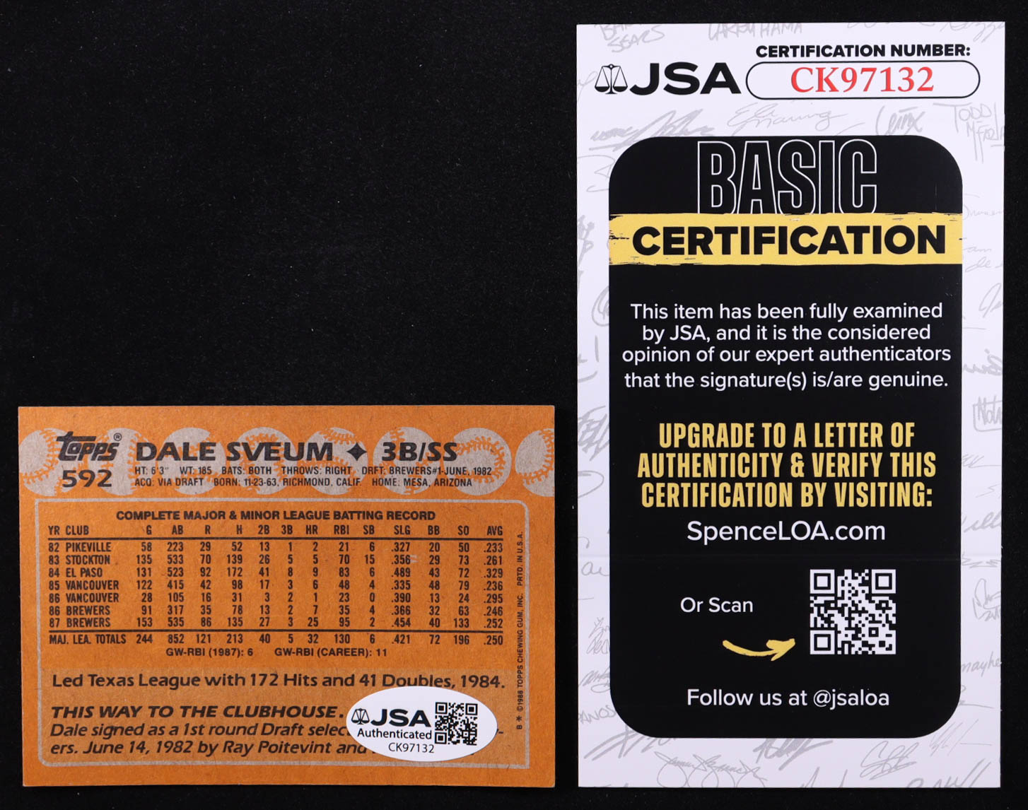 Dale Sveum Signed 1988 Topps #592 (JSA)