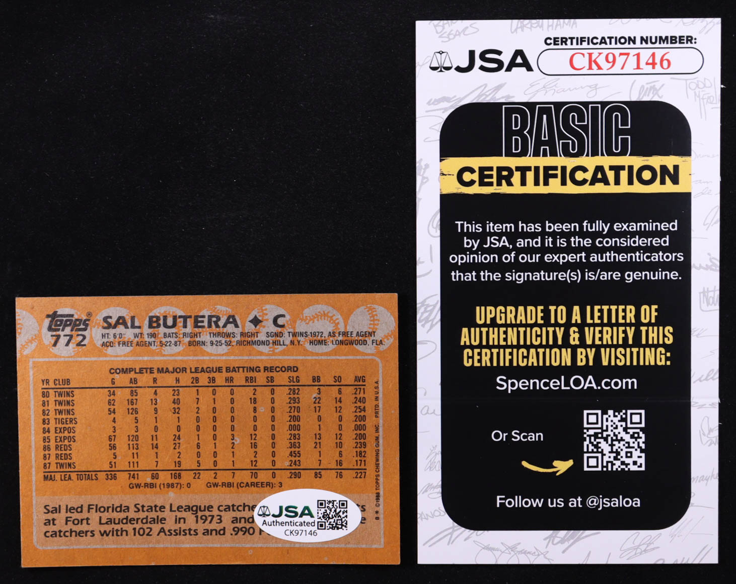 Sal Butera Signed 1988 Topps #772 (JSA)